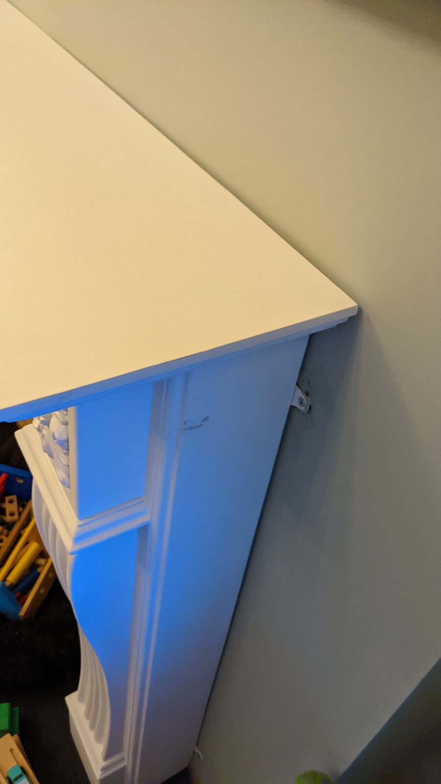 We have bought a couple of fire surrounds and it seems that the inner legs don't fully reach the wall despite all the other parts of the surround being flush to the wall (attached pictures). Anyone know why this is or how to make this look half decent? I don't even know where to start. Thanks very much
