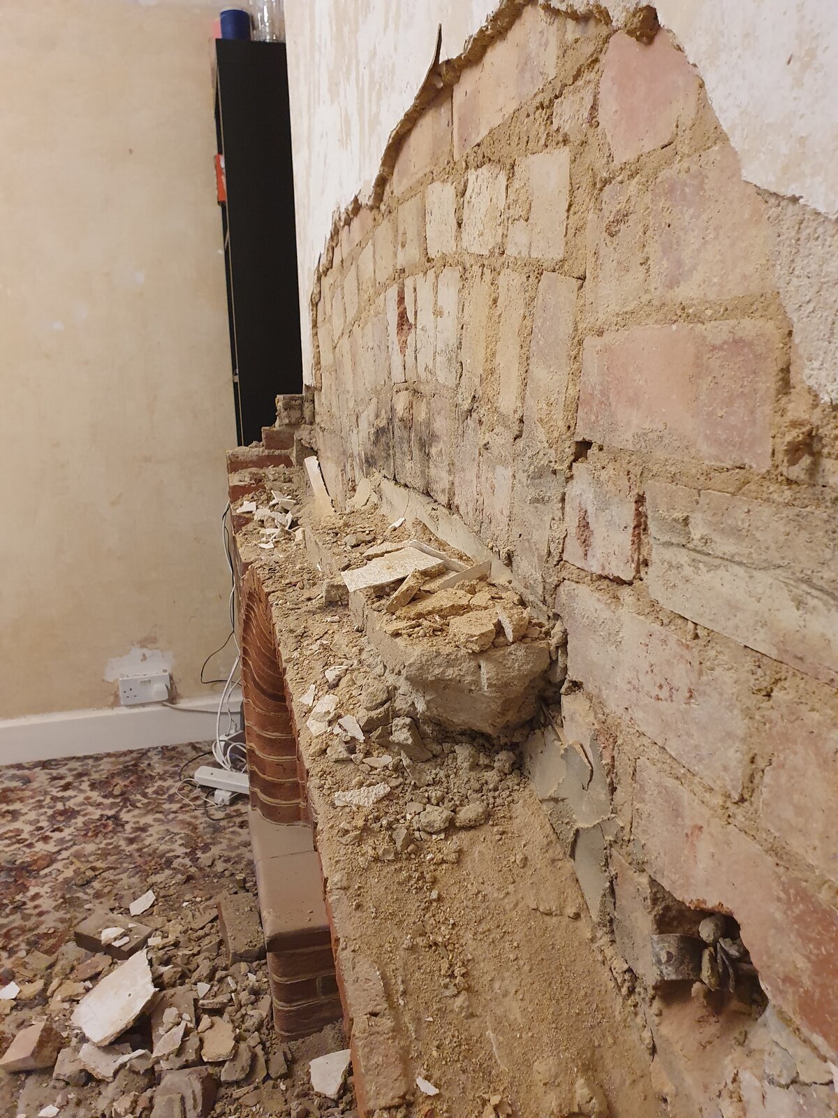 I am knocking down the decorative part of my fireplace. It was chunky, took a lot of place, and made out of bricks.