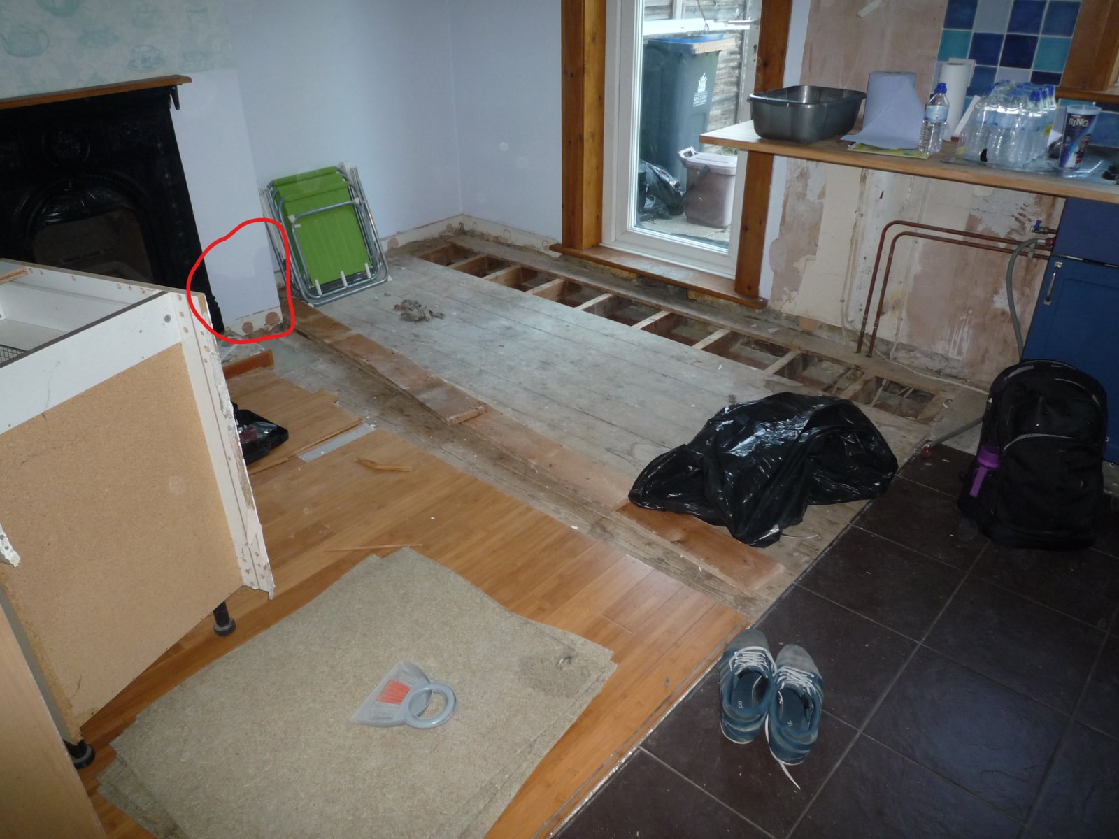 I was going to remove all of the infill, including under the fireplace, then put down DPC and fill it in with clean hardcore or bricks, then re-lay the concrete hearth.
