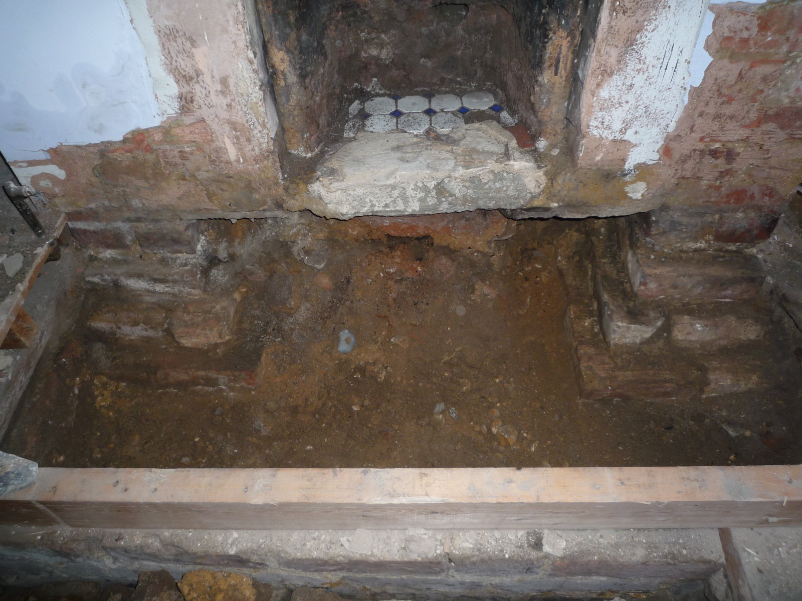 So I noticed that the fender wall infill for the hearth looked to be dirt as well as hardcore, and started to take out the hearth and see were the damp is coming from. I now see that the infill of the hearth is mainly dirt, and this seems to be bringing up damp from the ground to the wall plaster.