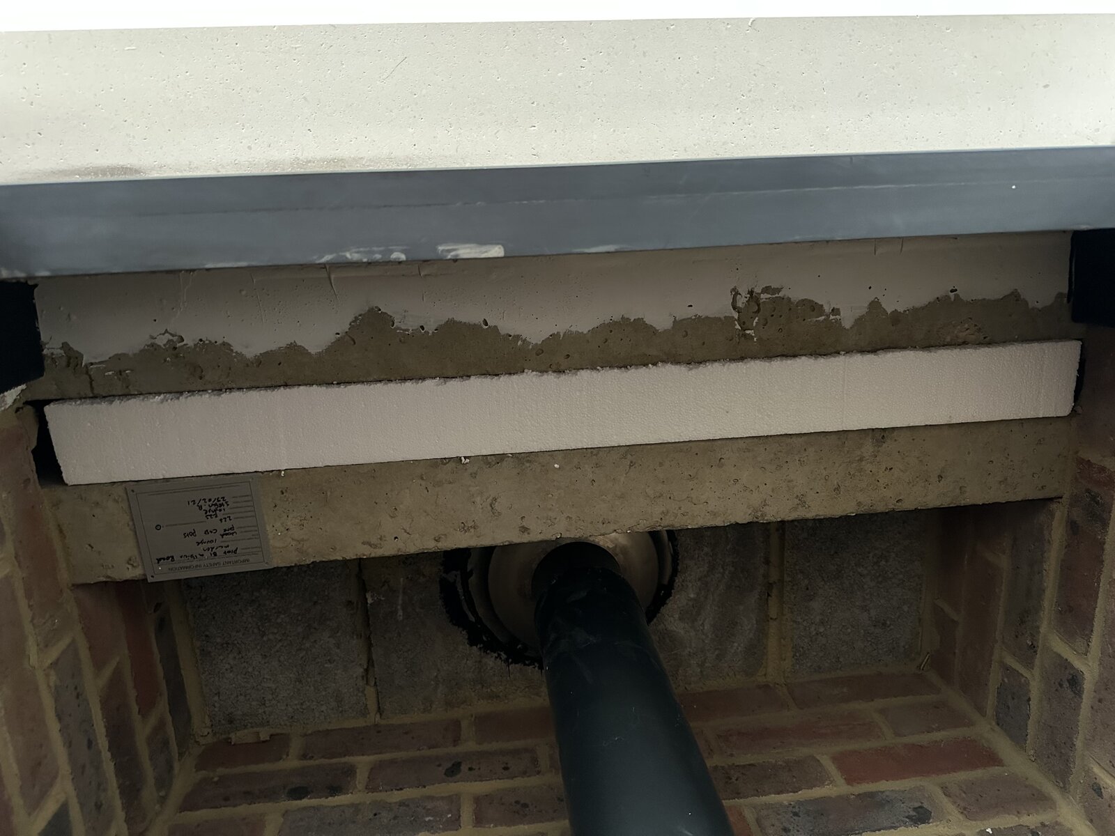 After some inspection, I noticed within the recess there are two lintels but with about a 4 inch gap between them which appears to go up in to the cavity (for now I've just blocked with a piece of polystyrene as you can feel a draught coming from it)