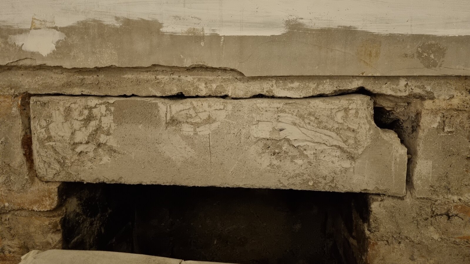 I can see a crack the full width of the lintel bar where the lower one has come away from the main. Planning on drilling it out level with the bricks so not to disturb anything else. There's nothing behind the lower lintel bar...