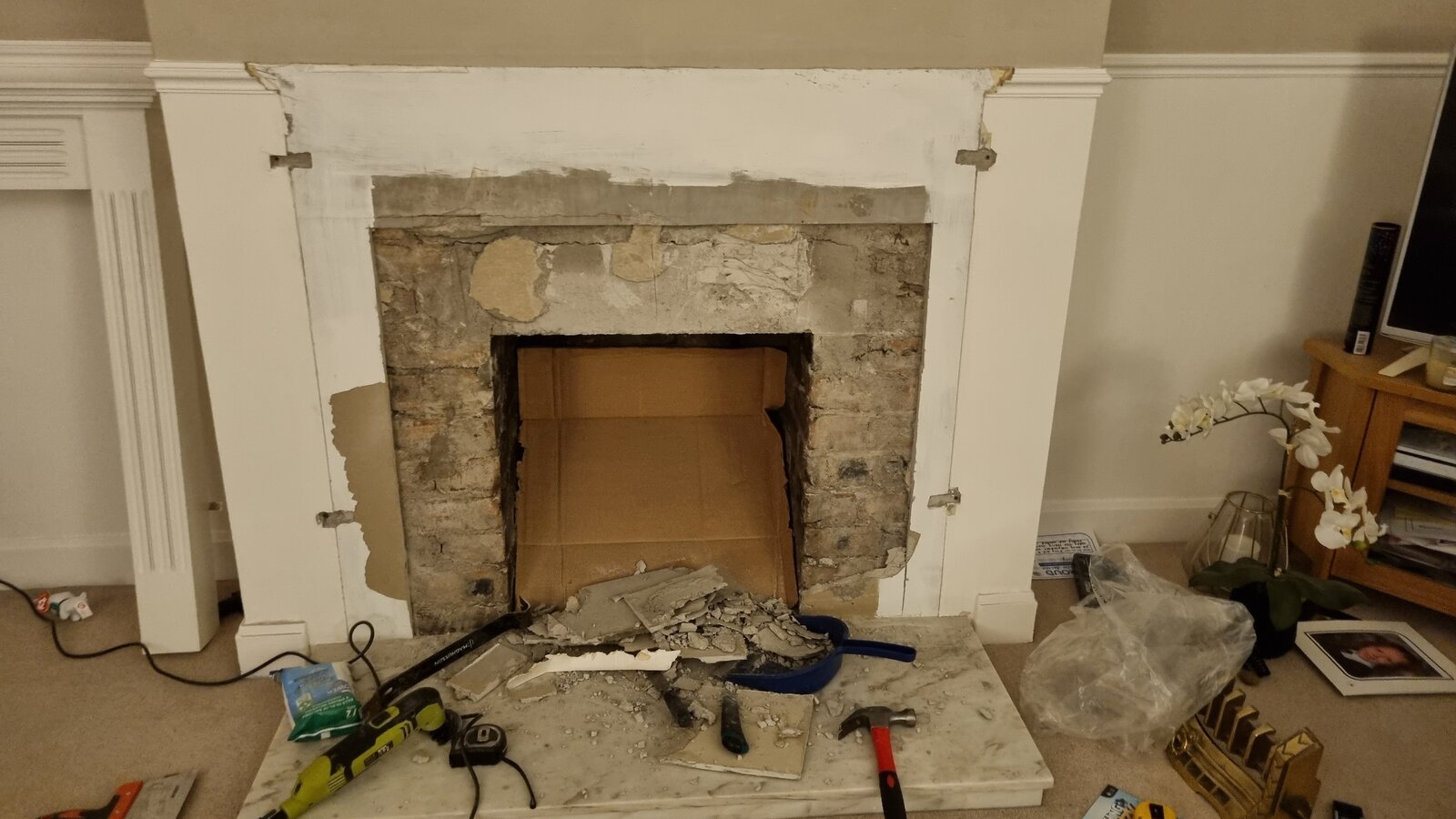 I'm removing a gas fire and putting a work burner in. Looks like there are two lintels, a main one and a secondary lintel perhaps put in to close the gap for the gas fire. Was this common practise? Any issues in removing the lower lintel?