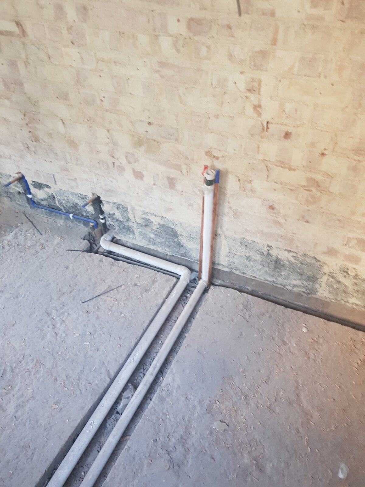 My plumber has completed first fix and left kitchen and bathroom feeds and drain pipe coming out the flooring.