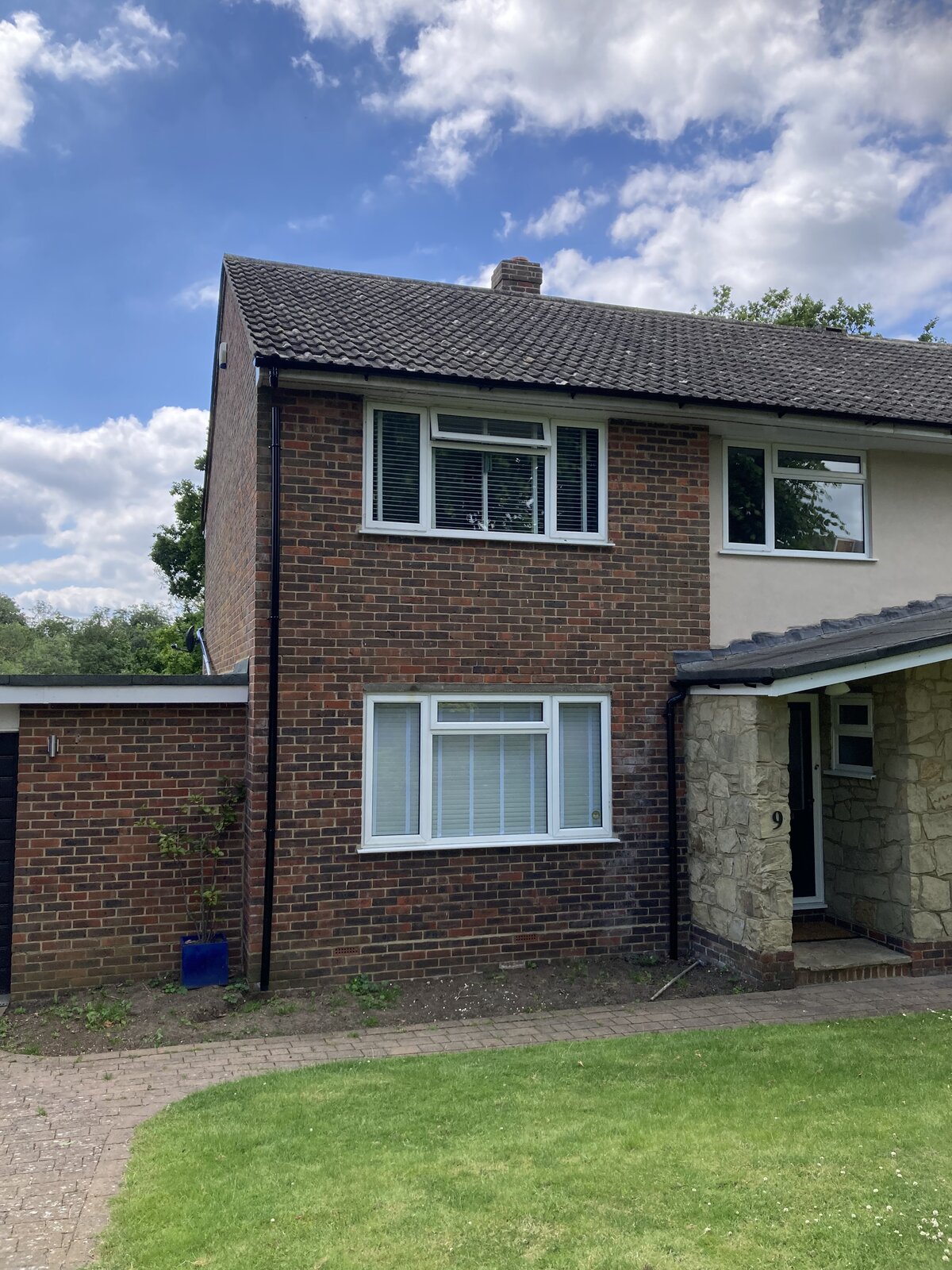 2) How can i get the downpipe (on the left from the roof) into the drain (on the right side below the guttering) as per the front-of-house pics under the window? (pic 1)