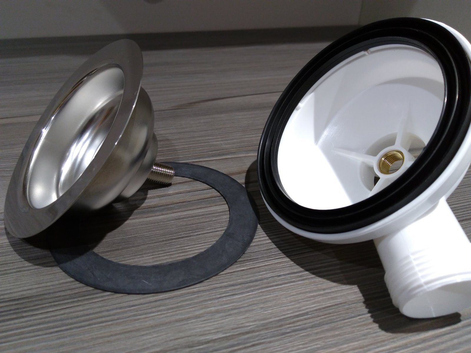 I have attached a photo of the waste and the thin rubber gasket that is for the top side, and also showing the larger rubber seal used underneath