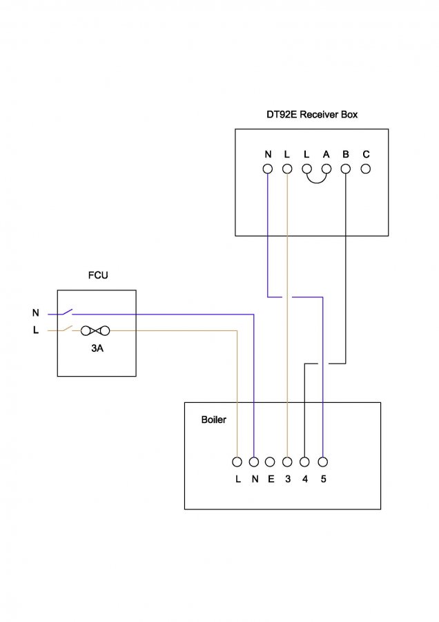 5. Joint neutral back to boiler, connected (3core) Live back to boiler then terminated into B
