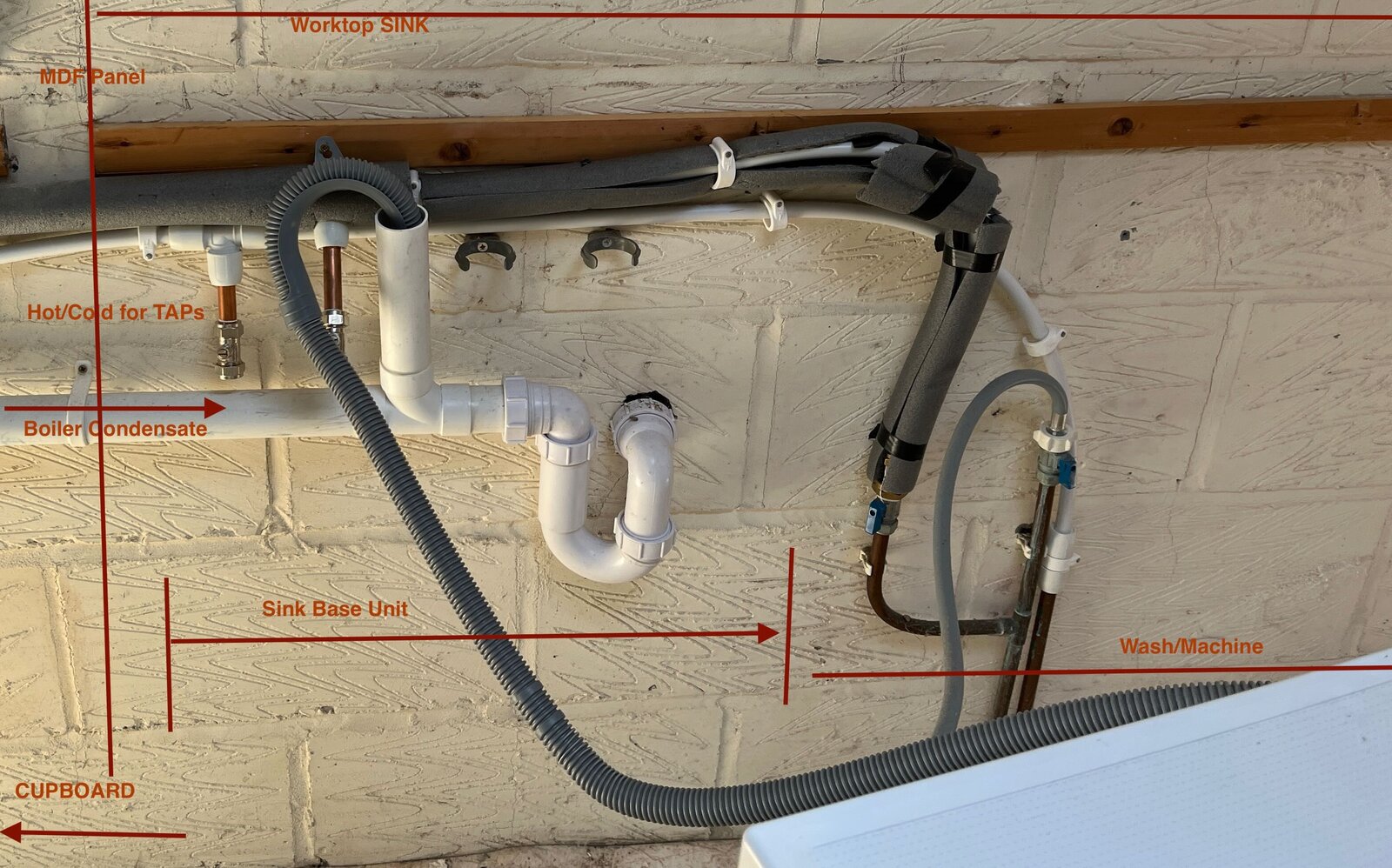 the picture shows the solvent weld pipework - we have a washing machine connected to the upstand and also the boiler condensate
