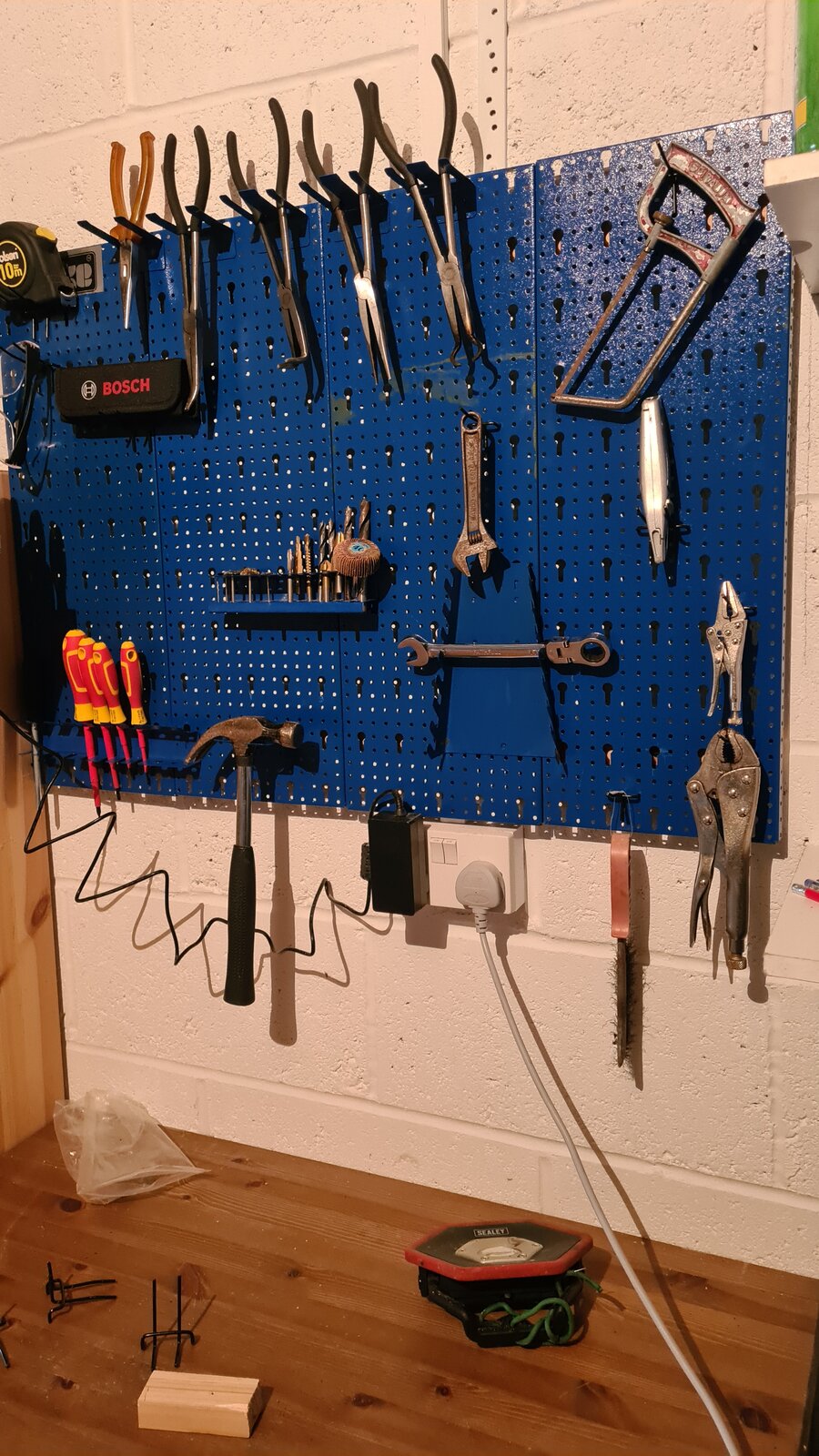 I'm after a bit of advice please. I've picked up a Clarke tool rack and want to fit it to my block garage wall which has an electrical socket and trunking on it, so it needs to be spaced off the wall to clear the trunking.