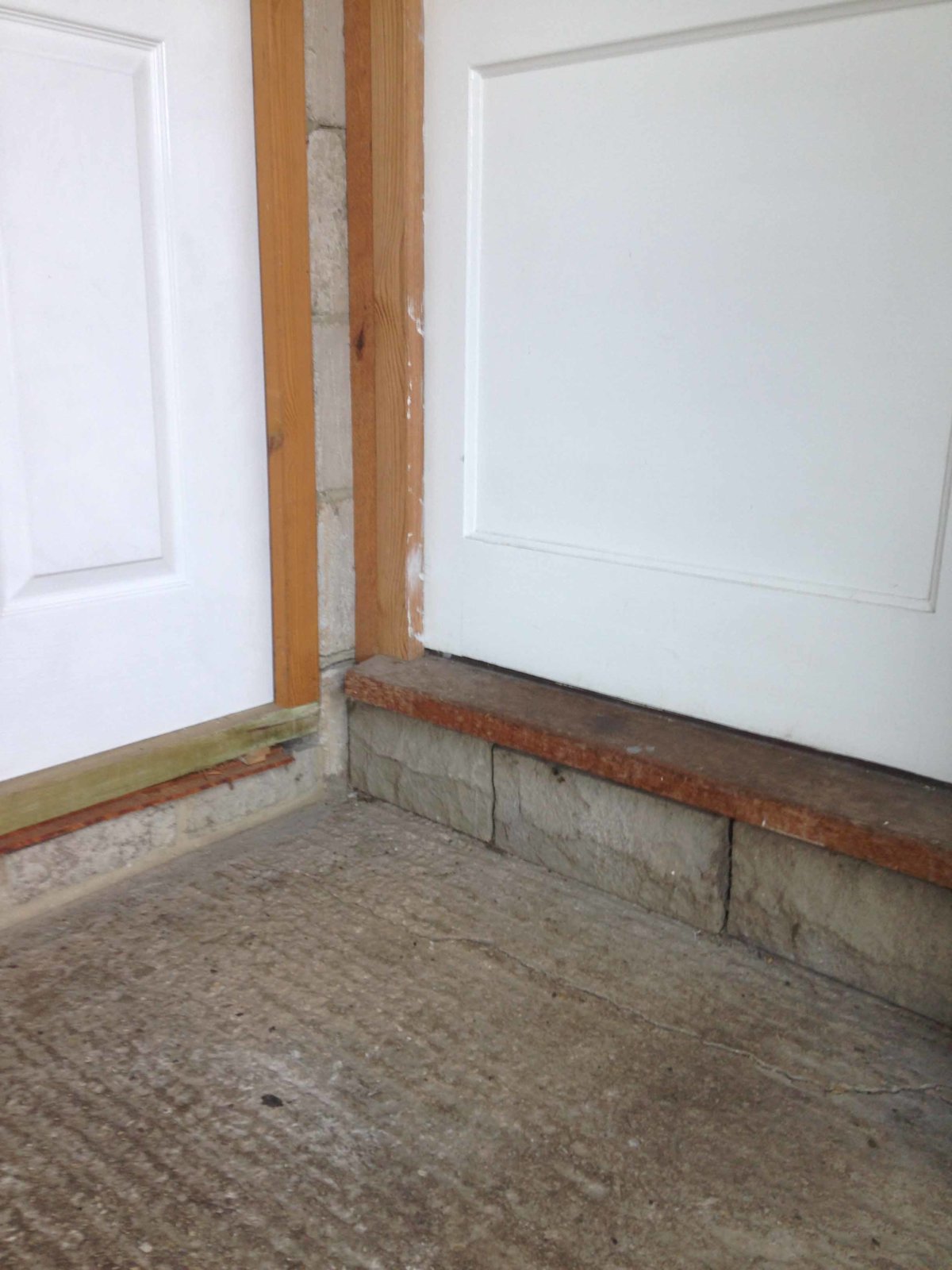 I moved into a new place recently, 80's property, where the garage has been extended, firstly back out into the garden, and then subsequently sideways around the back of the house. The second extension has the garage pedestrian door and the original house back door opening into it. A new door was fitted opening into the back garden. This has formed a room about 4m x 2.5m. It has been left internally as very much a garage extension, so bare concrete floor, flat roof continuation from the garage with open joists, single skin walls (one to the garage, two to the outside). The outside walls are rendered externally from about 500mm upwards and painted with masonry paint, inside is 90% rendered (not plastered).