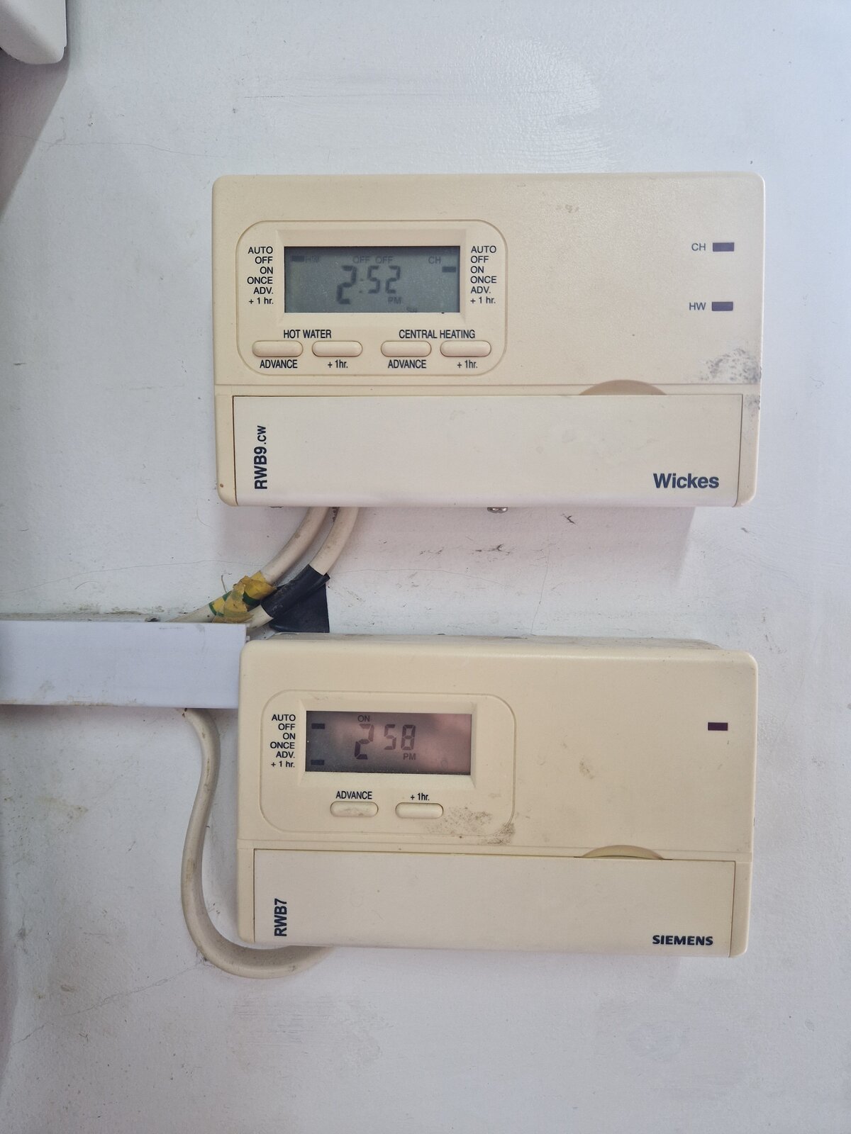 • Wickes RWB9 controlling hot water and downstairs radiators (presumably connected to 3 port valve)
