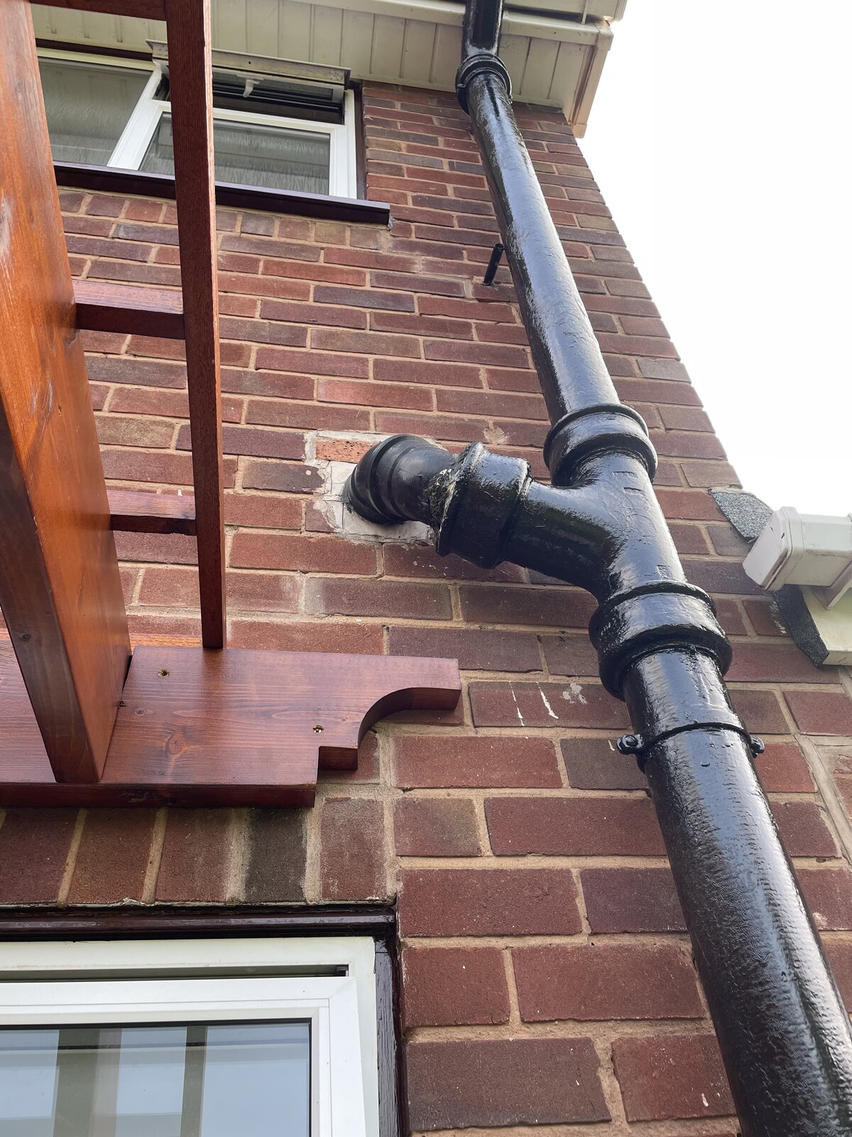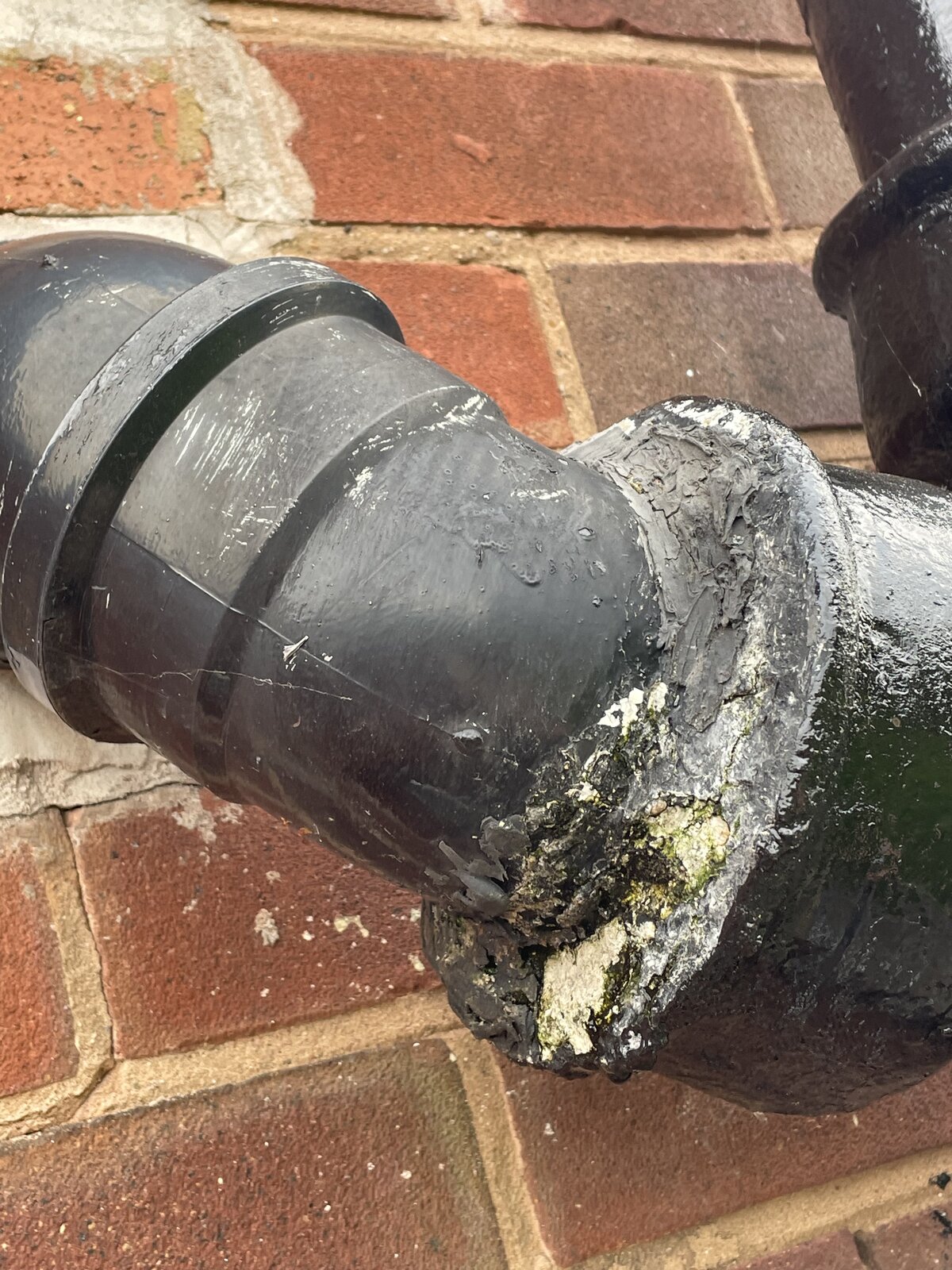 Can anyone help with some advice on this external pipework? The toilet waste (plastic) is going onto the main waste (asbestos concrete) and there is a small leak (for now) so that it drips every few seconds. The leak is coming from the white bit in the photo so at least I know the pipe is not cracked. I’m sure replacing the plastic pipe or both is the ideal solution but I’ve done a lot of work on this part of the house recently and I just want a quick and easy, if not permanent, fix.