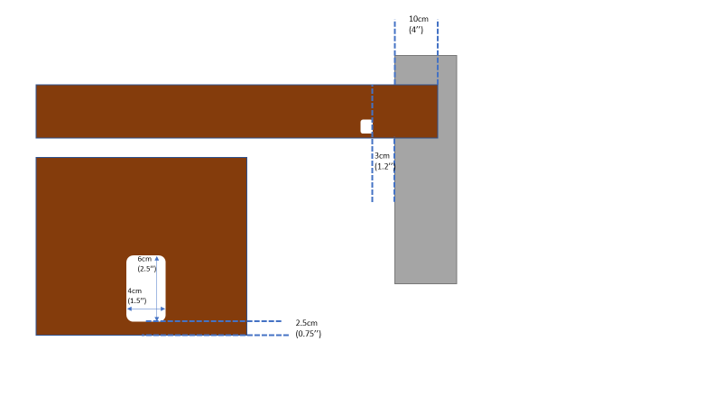 The big hole in joist number 3 is about 8cm in diameter and is at around 11cm from the wall