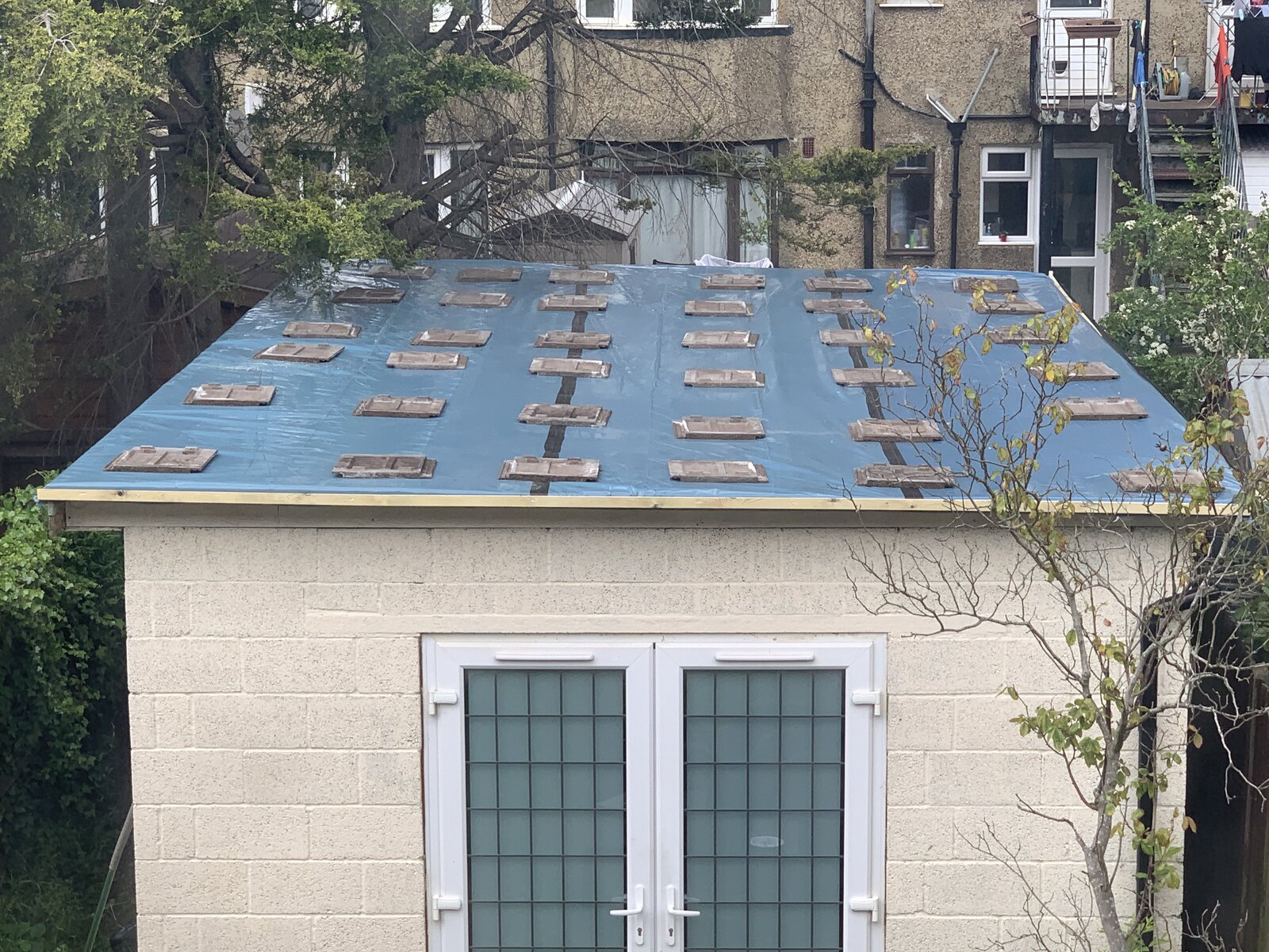 Those joists seem to be considerably undersized and at extremely large centres, I'd remedy that before going straight to the epdm. If the OSB is in poor condition but structurally sound overlay it with some 9mm. Your decorator friends will have the epdm down in half an hour, it's like wallpapering on the flat. Any temporary fix (other that a bucket underneath) is throwing good money after bad.