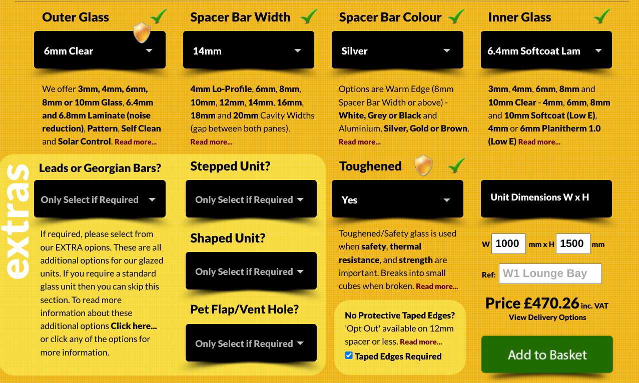 - 14mm Argon filled silicone sealed cavity with a black warm edge spacer bar.
