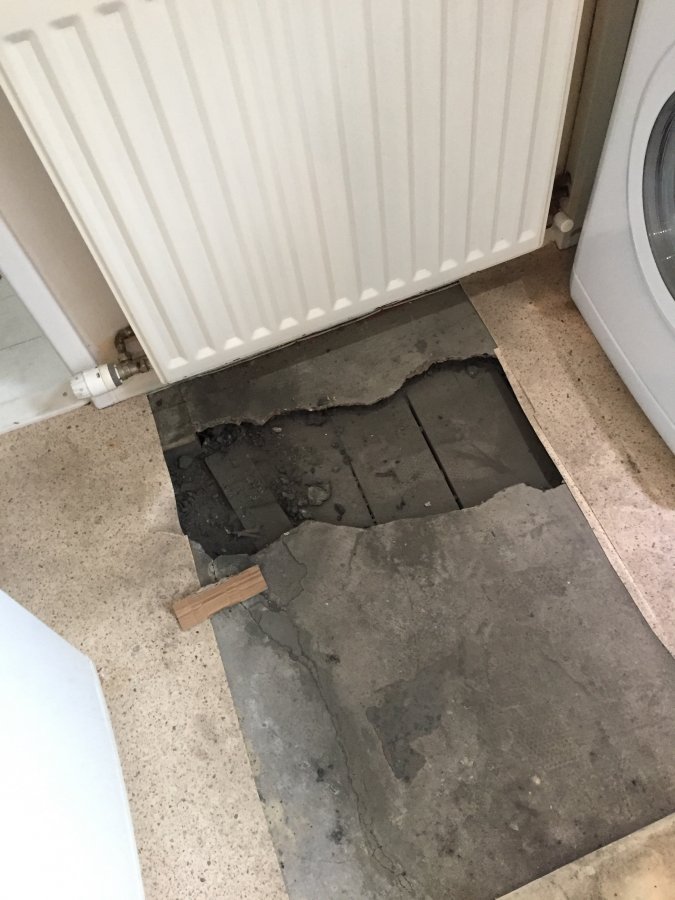 In our first floor flat the kitchen floor is quite uneven and has a slope.