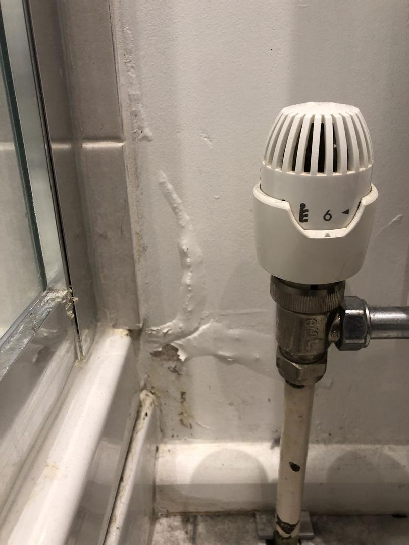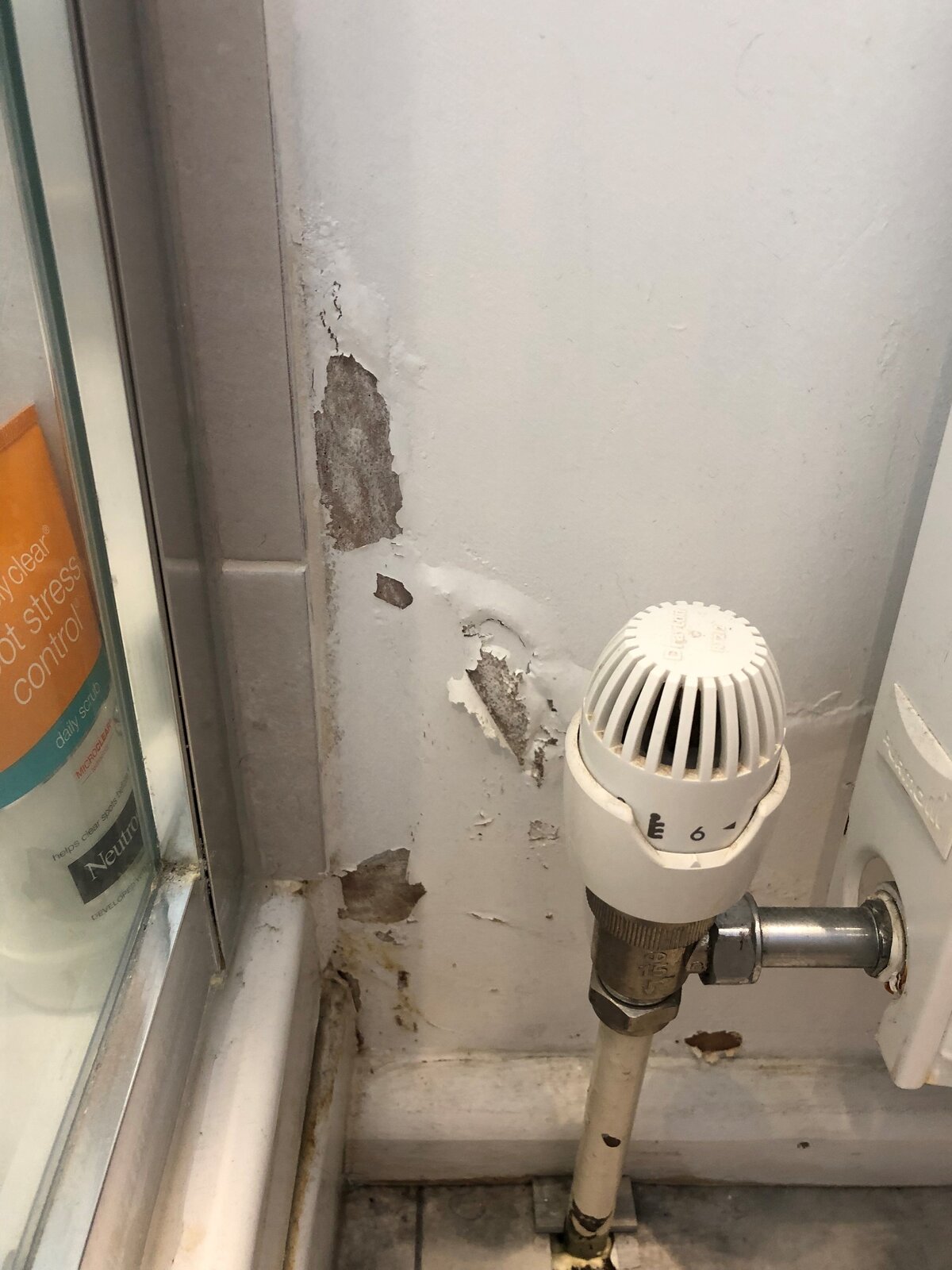 I have flaking paint at the bottom of one bathroom wall next to the shower cubicle (rental home, I am the owner).