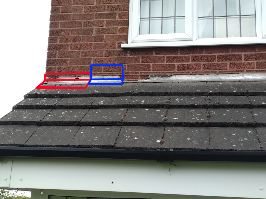 We have a small tiled roof over our porch/bay window. It was originally built as a flat roof, then a previous owner put the tiled roof over the top on a slope to improve aesthetics (probably in the late 80s). Unfortunately they didn't put proper lead flashing on. They just put some very thin flashing tape on which must have had some kind of bitumen backing as that has seeped out in the heat over the years. This flashing tape has degraded to the point where it has holes in it now.