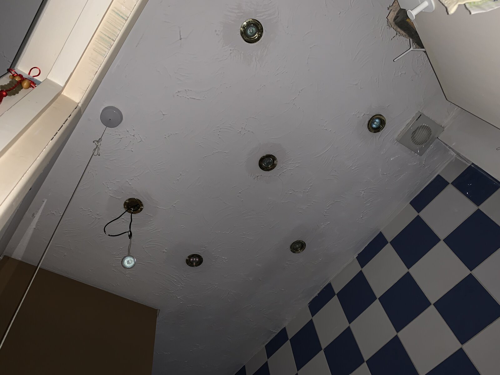 I have six GU5.3 spotlights in my bathroom. One of them occasionally started flashing and, one day, it tripped the fuse. After resetting the fuse, only three of the lights are working. See photos.