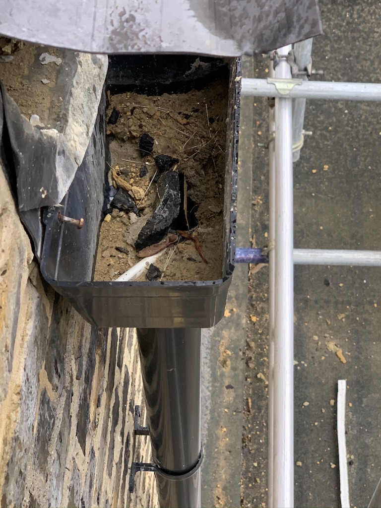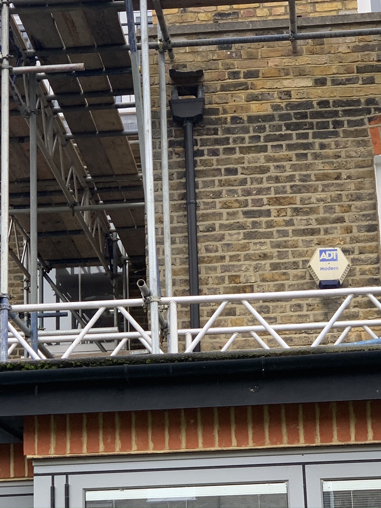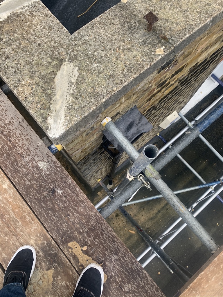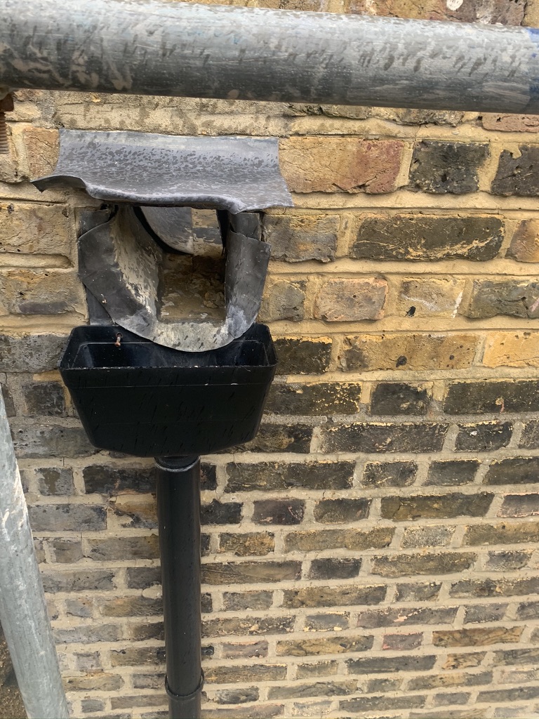 Just finishing up our loft conversion, and I noticed this. I'm still waiting to hear back from the builders, but wanted to get second opinions. The hopper is existing, but I swear that "roof" is not. What could that "roof/lid" be? i.e. the bit of lead sticking out horizontally over the hopper. Is it mean to be a roof, or is it just lead work they haven't folded down? And yes they need to clean it too.