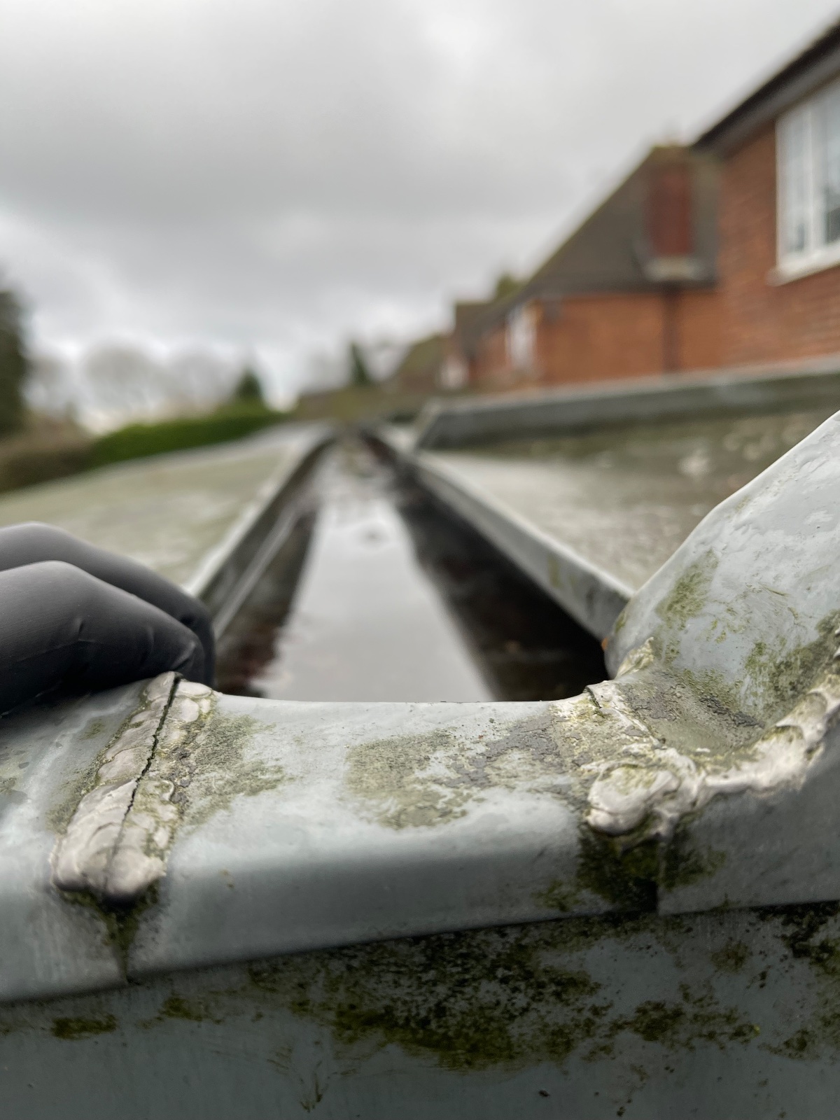 Hi, noticed today few spots from where the water has been dripping. One from the zinc sheet overlap and the other from the wooden support. Had a look in the guttering and there was standing water and also noticed a crack in weld at the edge. Is this the most probable cause for leak or any other obvious places to look ? Also, is Acrypol the best product to fix the crack for now. Thanks