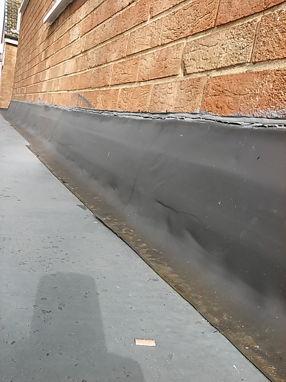 We have recently moved and the kitchen extension (maybe 25 square metres) has a grp flat roof which has started to leak. This was repaired, apparently, within the last 12 months. But if I look at it from the bedroom window the surface looks blistered and there are a couple of large puddles which take ages to drain. The flashing is sealed with shrivelled silicone. It does look a dog's dinner. After receiving a quote of nearly £3000 to repair it, I forwarded some images to a grp company who politely suggested it was a bad job and it's probably a better bet to re-roof than to try and stick 'plasters' on it. I tend to agree with them (they have nothing to gain for suggesting this, incidentally). Probably cheaper too.