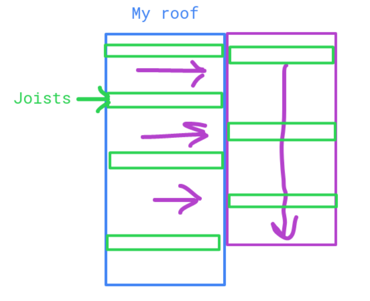 I am currently in the process of figuring out the slope to drain off the water. I have attached an image of the current setup. My current line of thinking is to slope the other roof to draining towards the middle (like ours) and then there is a small channel of water around the parity wall area which drain off. Good idea ? bad idea ?