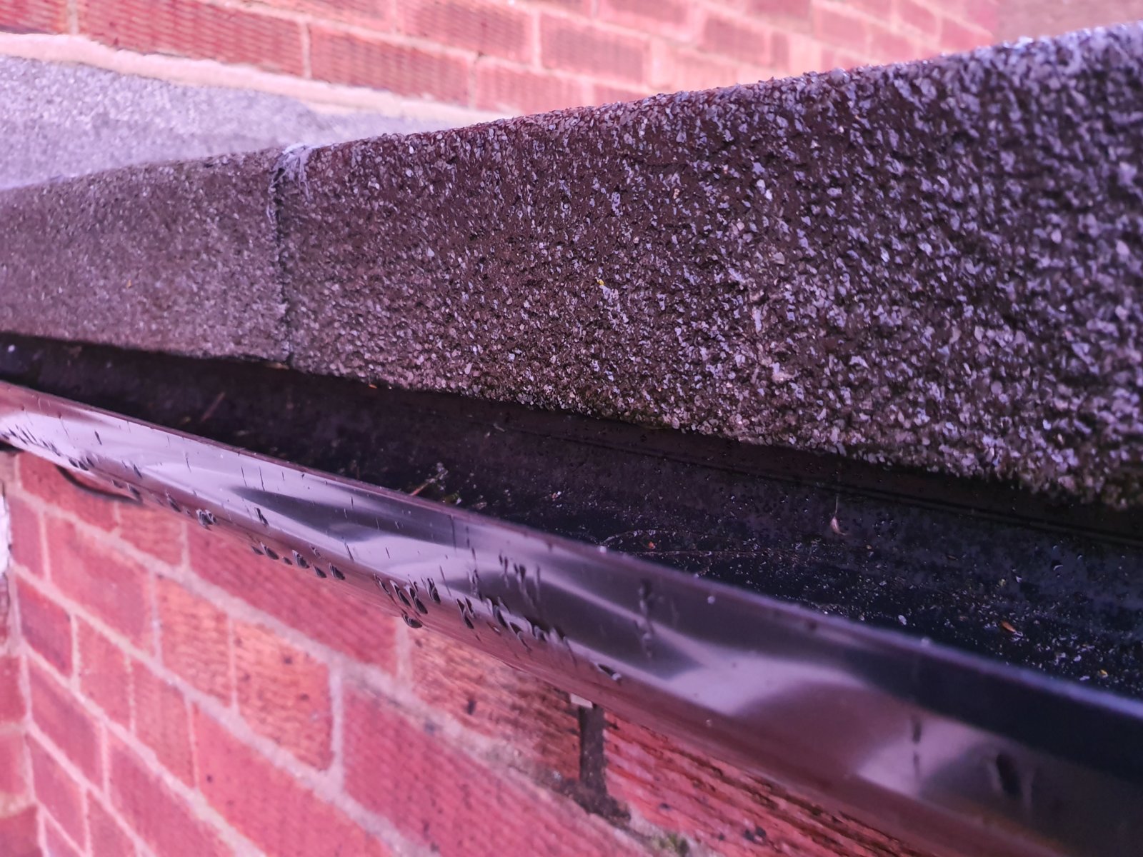It is a 50s concrete flat roof, and although you cant see from the pictures there is a drip groove which does filter a lot into the guttering.