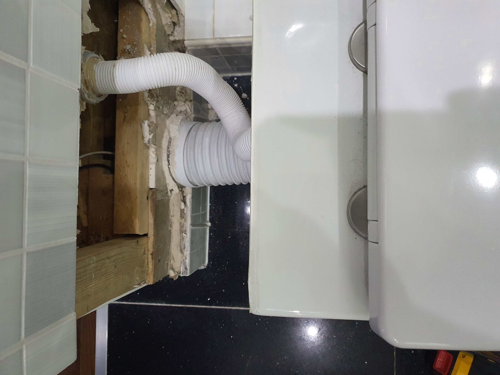 Reason for the flexi pipe is the cistern is not central vertically due to limited space to box it in. Ideally I'd like to fit solid pipe but am not sure how I can get enough room to swing around a couple of 90deg bends or what kind of pipe (solvent/compression) would reliably fit to the Geberit outlet pipe as I thought they used weird sizes? The rubber bung to the back of the loo is also missing (although despite the great wadge of silicone it does not leak from that point).