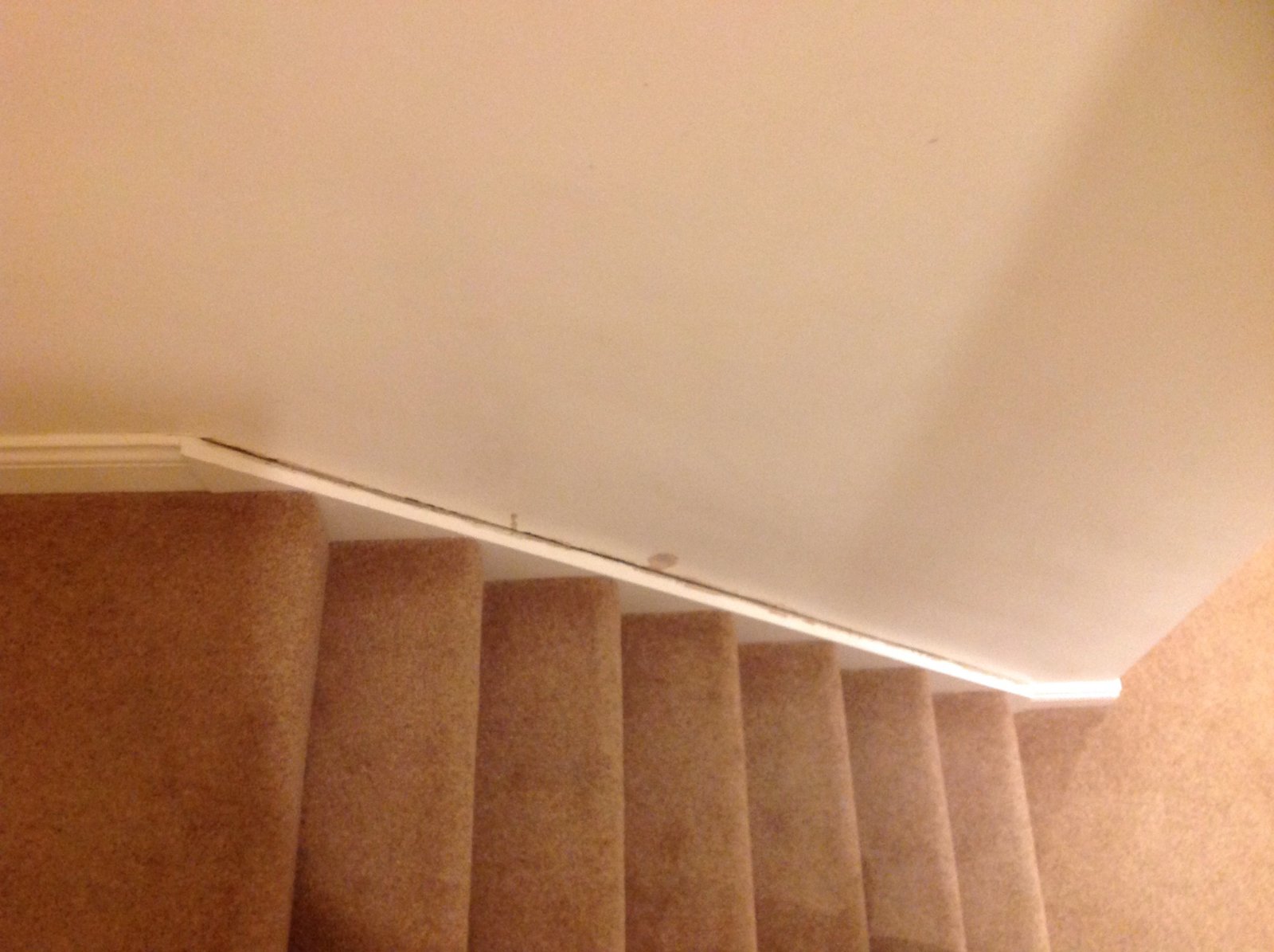One of the walls on the side of a staircase is plasterboard stud wall, which runs all the way from the ground floor to the upstairs ceiling. I noticed a significant crack in the caulk between the side of the staircase and this wall, and found the reason is that the plasterboard wall is quite flexible. If I push on it, it moves by about 5mm away from, the side of the staircase. It is definitely the whole wall moving and not just the plasterboard being loosely attached to the studs.