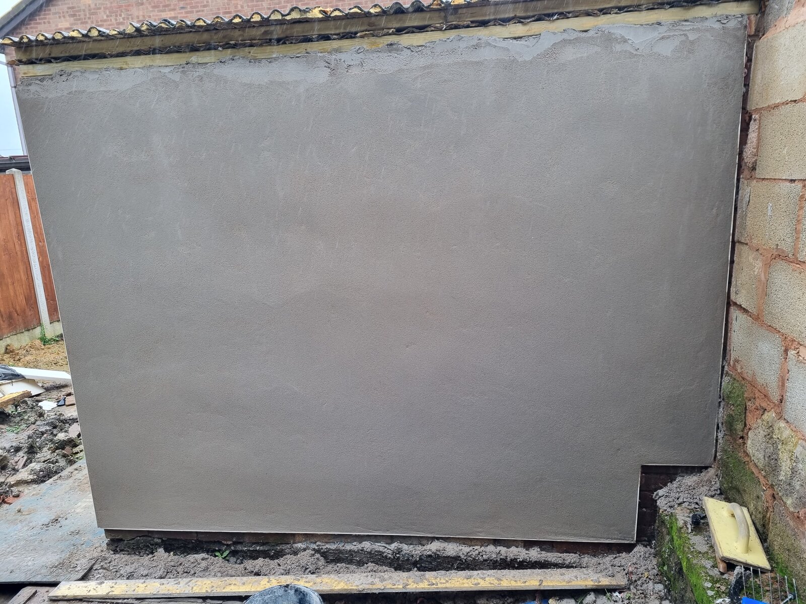 Evening guys. So ive done the top coat of render on the back of my garage today. 5 sand. 1 cement and 1 lime.