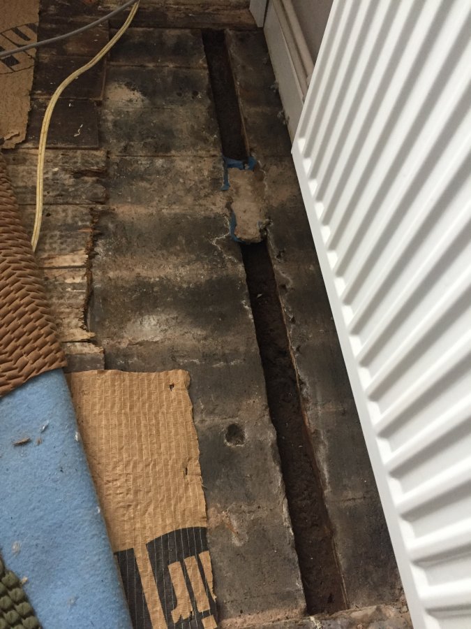 The floor construction is a solid concrete floor with timber over the top then carpet finish. We have no other areas in the lounge which struggle with damp/rot. Not really sure what this channel was for, possible a supply for something.