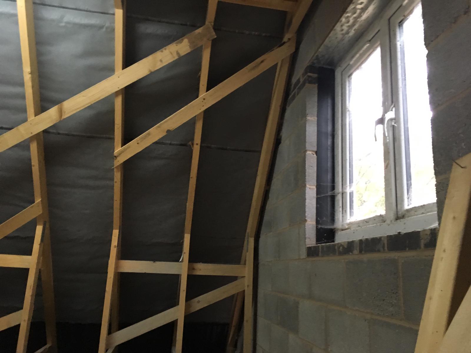 I was going to put a staircase on one of the walls, having it reach the first floor around the middle of the room, the roof is an apex type roof, it is attached to next doors garage on one side and an open gable end on the other... ive attached more photos....