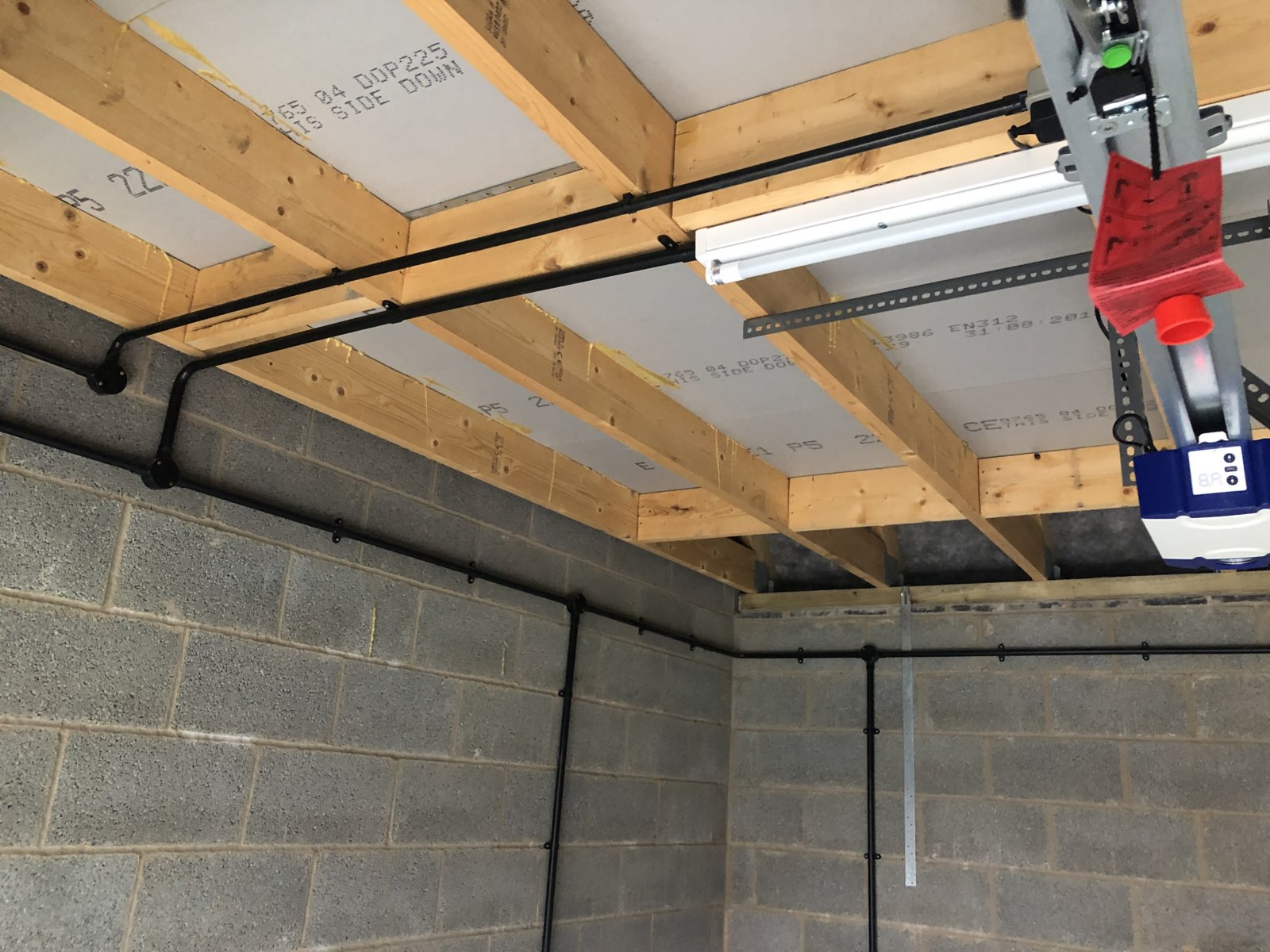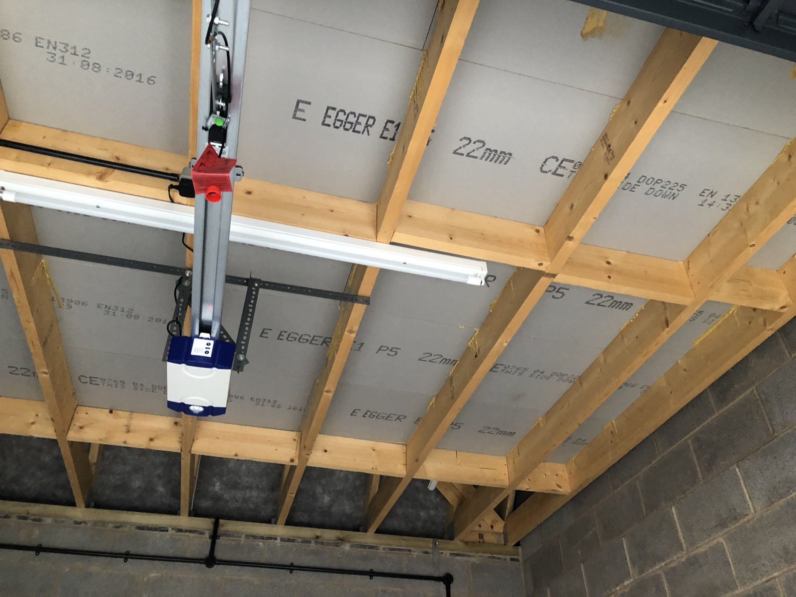 I was hoping that I could put up an rsj just behind the electric door unit which would be roughly halfway between the existing joists.... this way I wouldn’t need to mess with the door and mechanism... I was going to get the stairs to finish on top of the rsj....