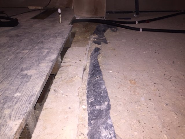 This is where the old floorboards will meet the new screed
