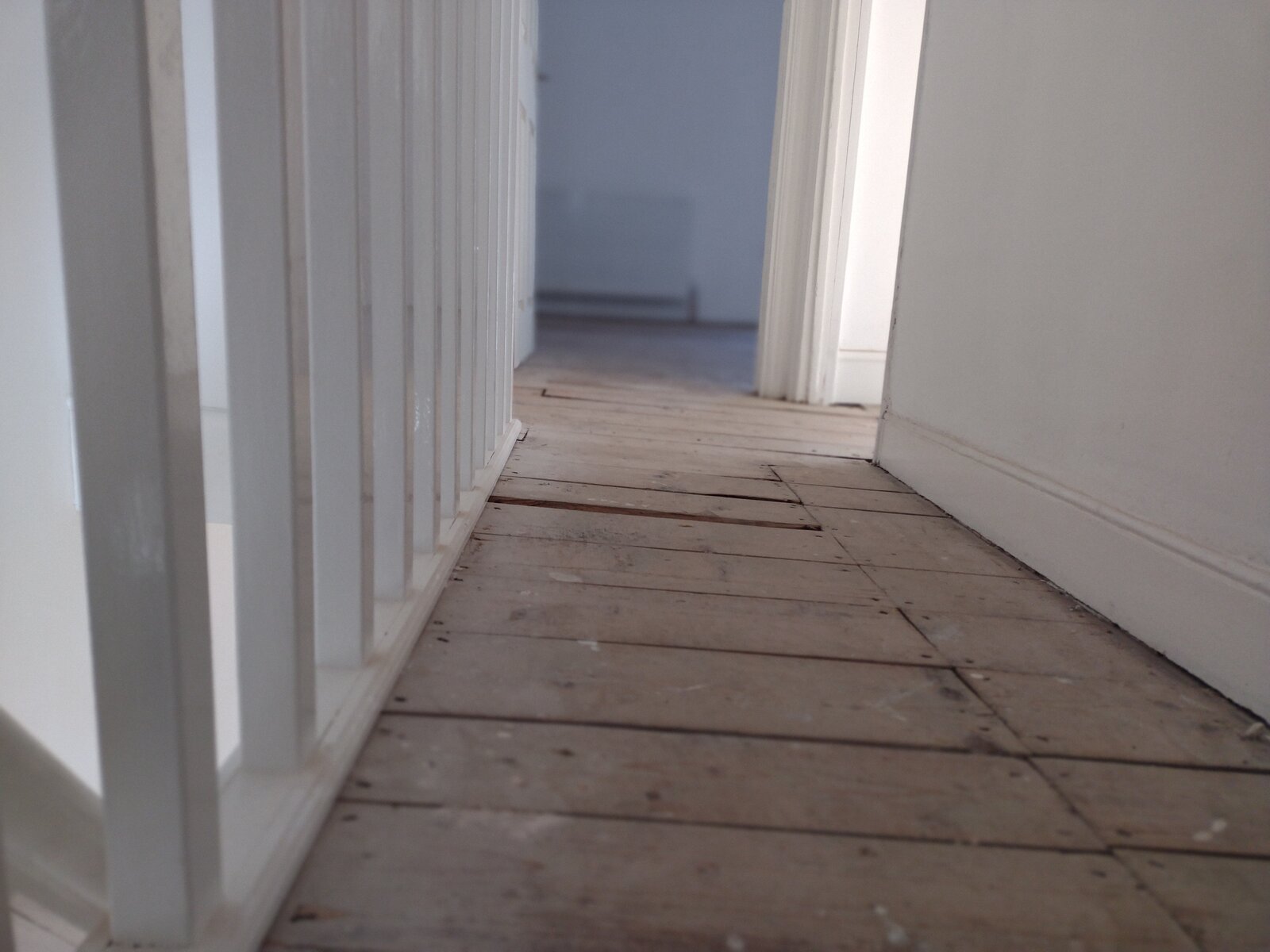 Floorboards being ripped up in a month or so apparently and joists levelled as best they can and new flooring laid.