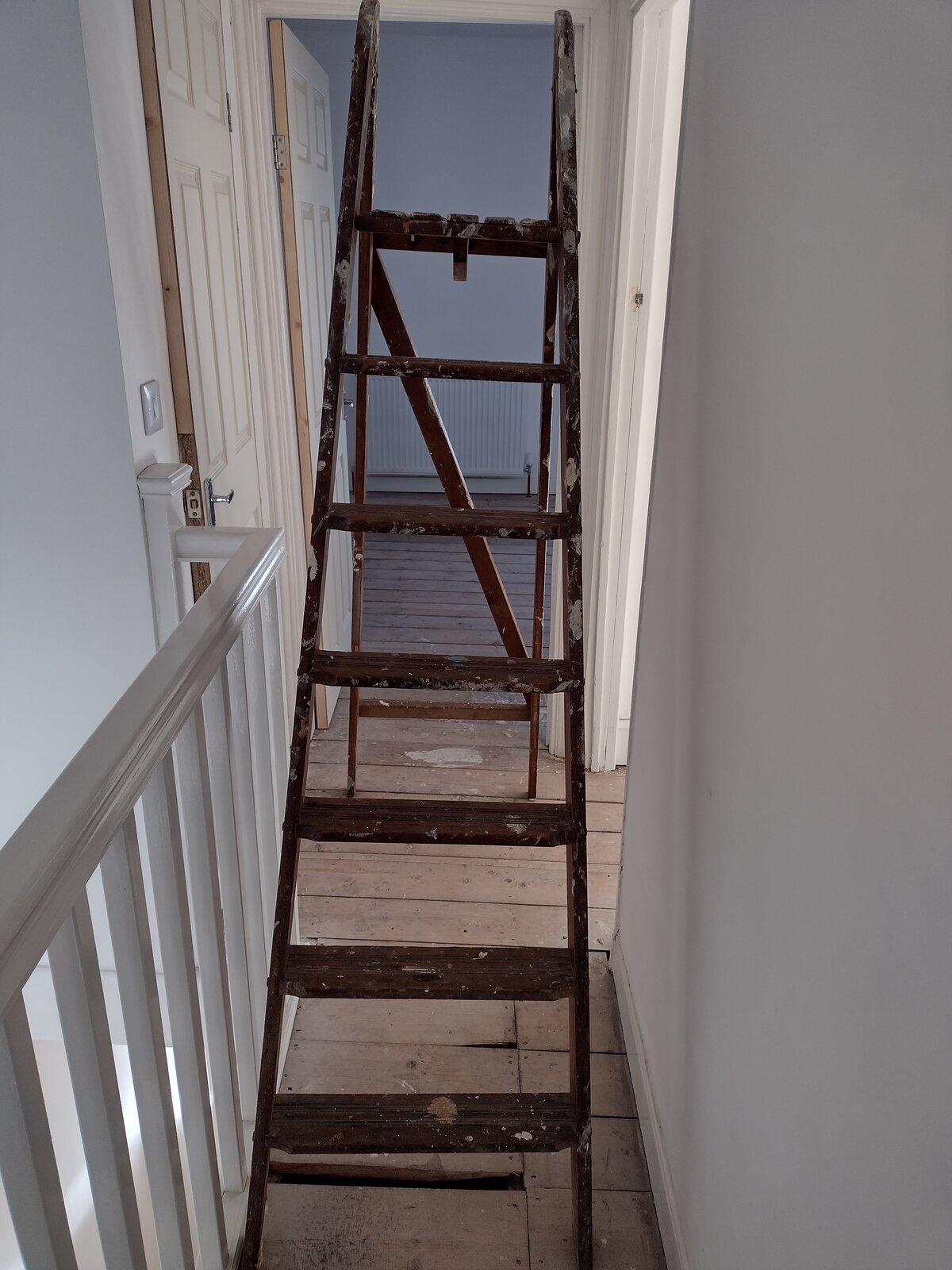 I guess my mate will have to take a look under the floorboards to see why the floor is slopping. That and the soft wood noted around attic hatch are his main concerns.