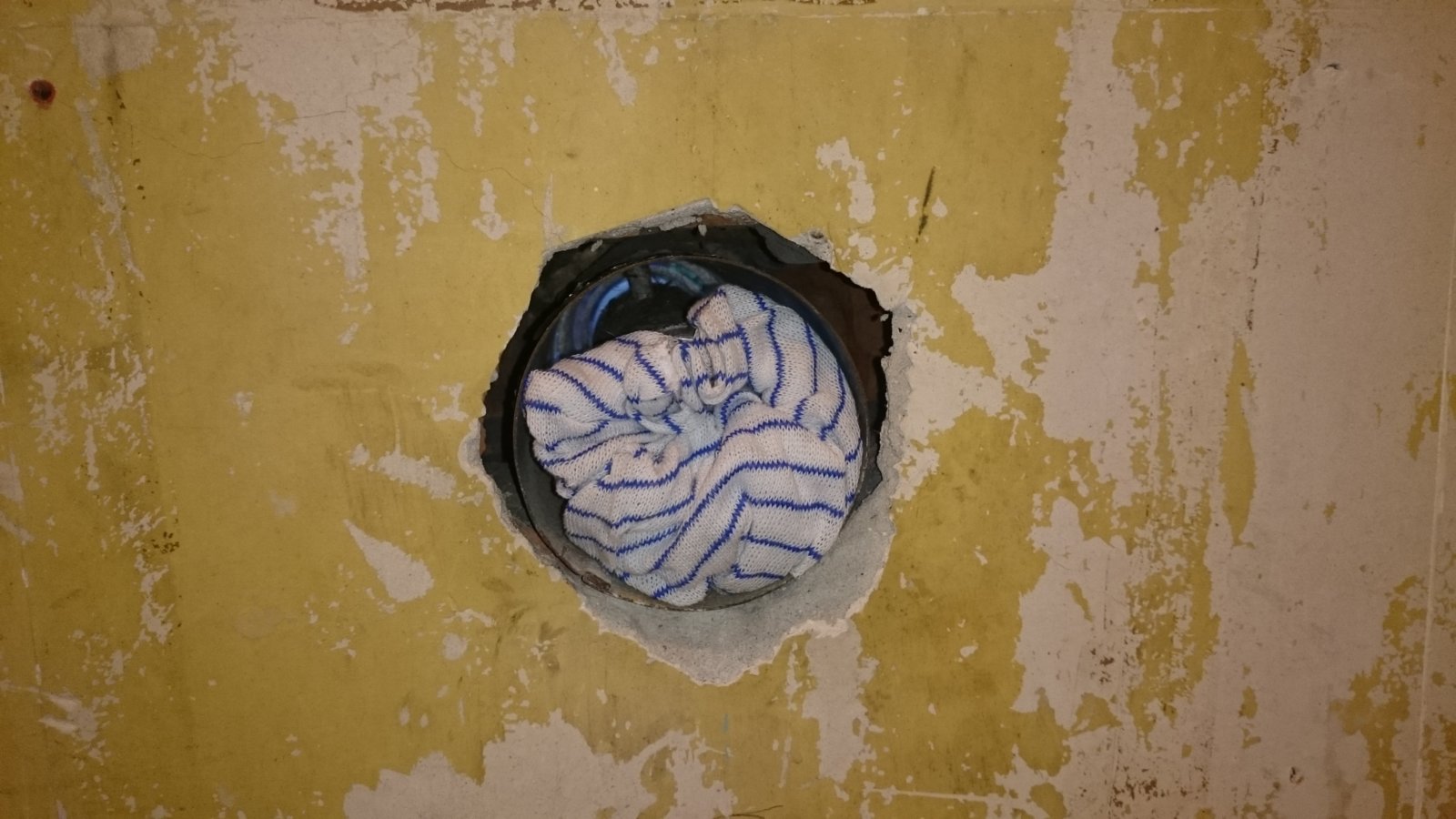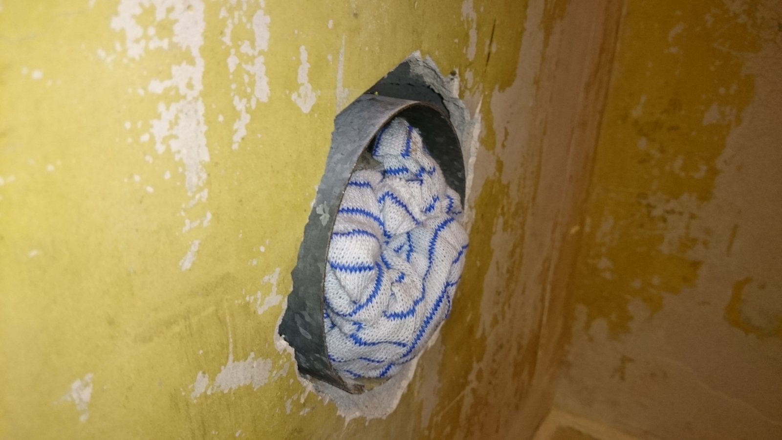 I removed a gas fire mid way up a flight of stairs, there was obviously a hole with a flue pipe/vent going directly outside with an external wall. As it wasn't priority at the time, I stuffed it with a rag, and sealed it over with a bag to stop the gale force draft.