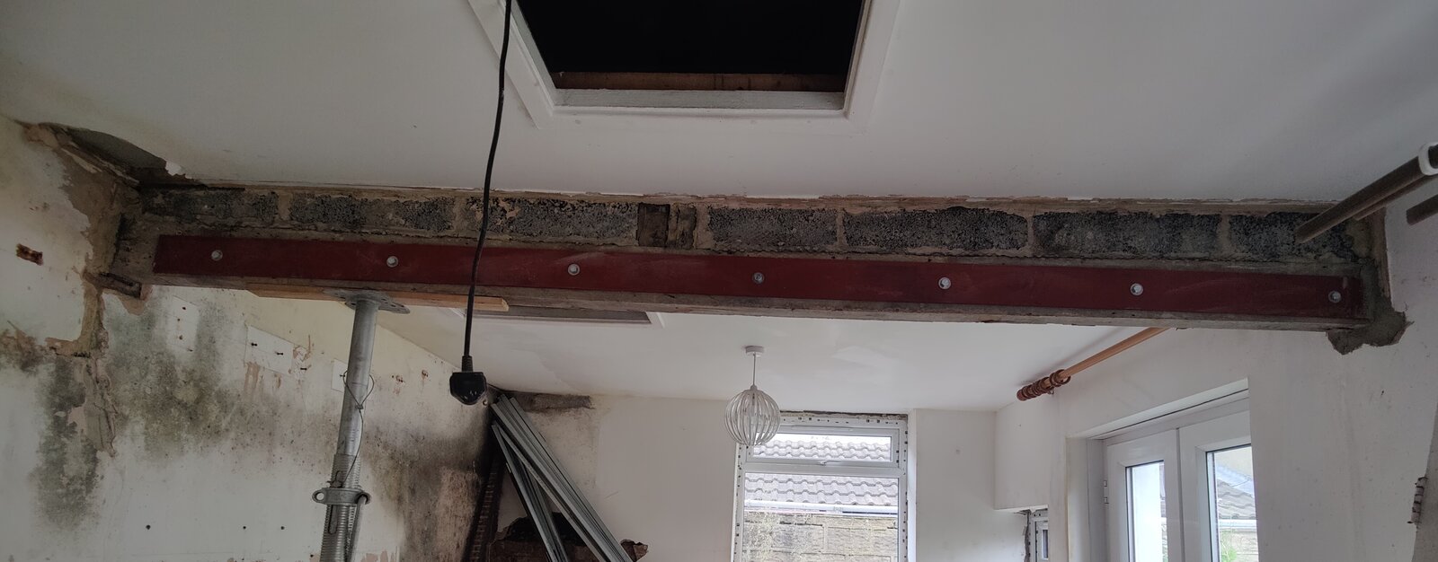 The latest discovery is a beam in the side extension that is supporting some blockwork above and the purlins for the side extension roof. It was covered in pine panelling. I was expecting it to be steel behind but found a 5" x 2.5" wooden beam. I thought it looked undersized so consulted with a structural engineer who agreed and suggested putting 100 x 8mm steel plate on either side of the beam. I also want to add a blockwork (pillar, column, pier or whatever you want to call it) on one side, tied into the wall to slightly reduce the span and make sure the steel plates can extend over the support. There are some minor cracks in the plaster on that wall, starting where the beam is pocketed in so I think adding strength here would be sensible. I think that wall is an origional sandstone wall that was used for stables. I’ll make the column 215mm depth starting with the first block on its face and use screw in ties throughout. On the other side I managed to get the steel slightly into the pocket and the wall there looks fine (newer and made of brick) so happy to leave it as is.