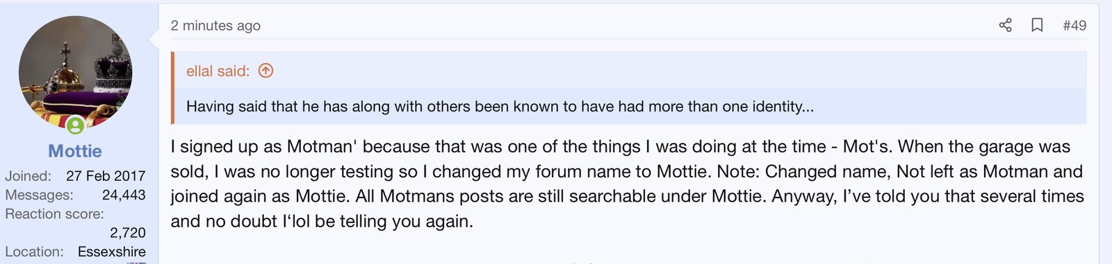Then there may be others, especially like me, who are accused multiple times of having previous usernames, so it's perfectly natural to try to ascertain how or why these allegations emanate from. In doing so, much research is done on previous posts.