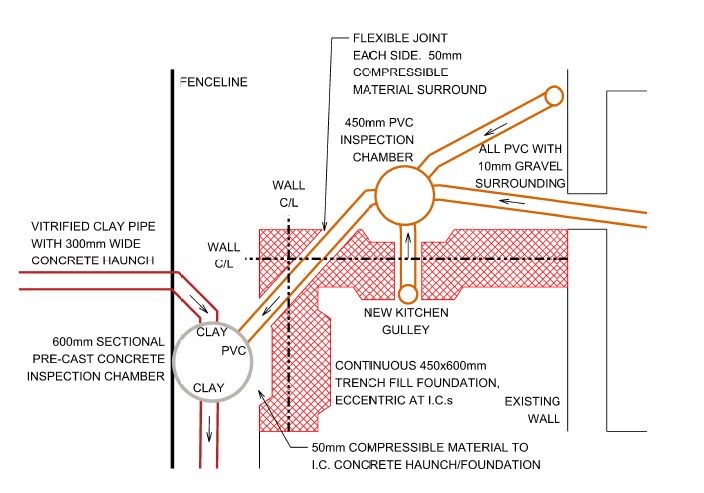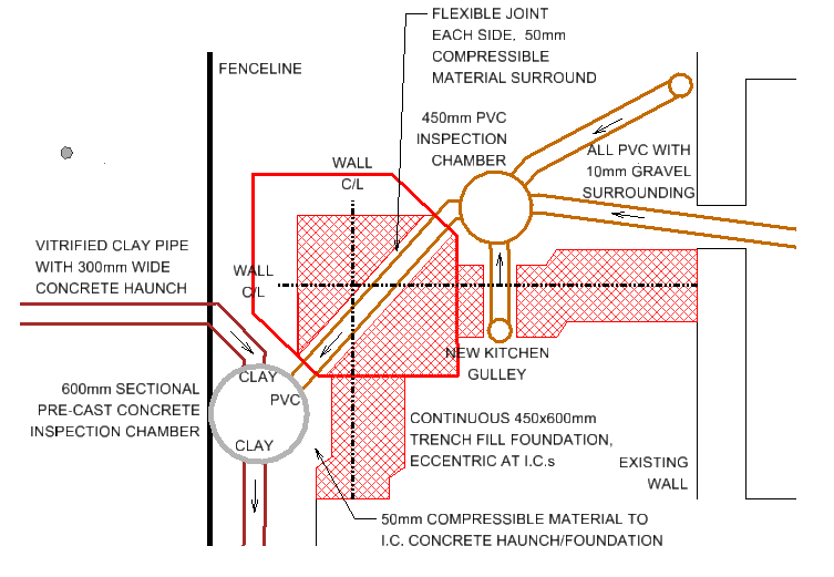 I proposed a full fill foundation with 50mm compressible material around the drain: