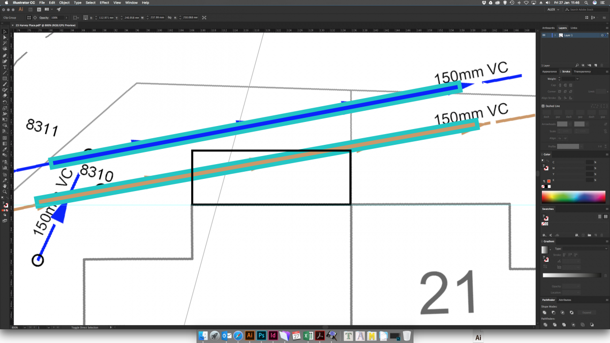Other houses on the street have similar extensions at the front already. i'm quite confident the positions of the pipes are quite accurate based on measurements i've made on features like manhole outside my property etc.