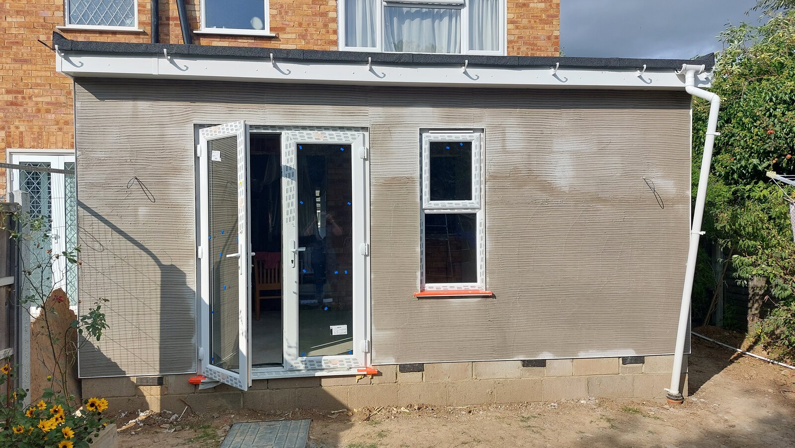 We have just had an extension built with French doors and the walls rendered. The doors only open to 90% before the hinges push against the render which then breaks away. The builder had the render patched up but it will obviously come off again over time. What is the solution?
