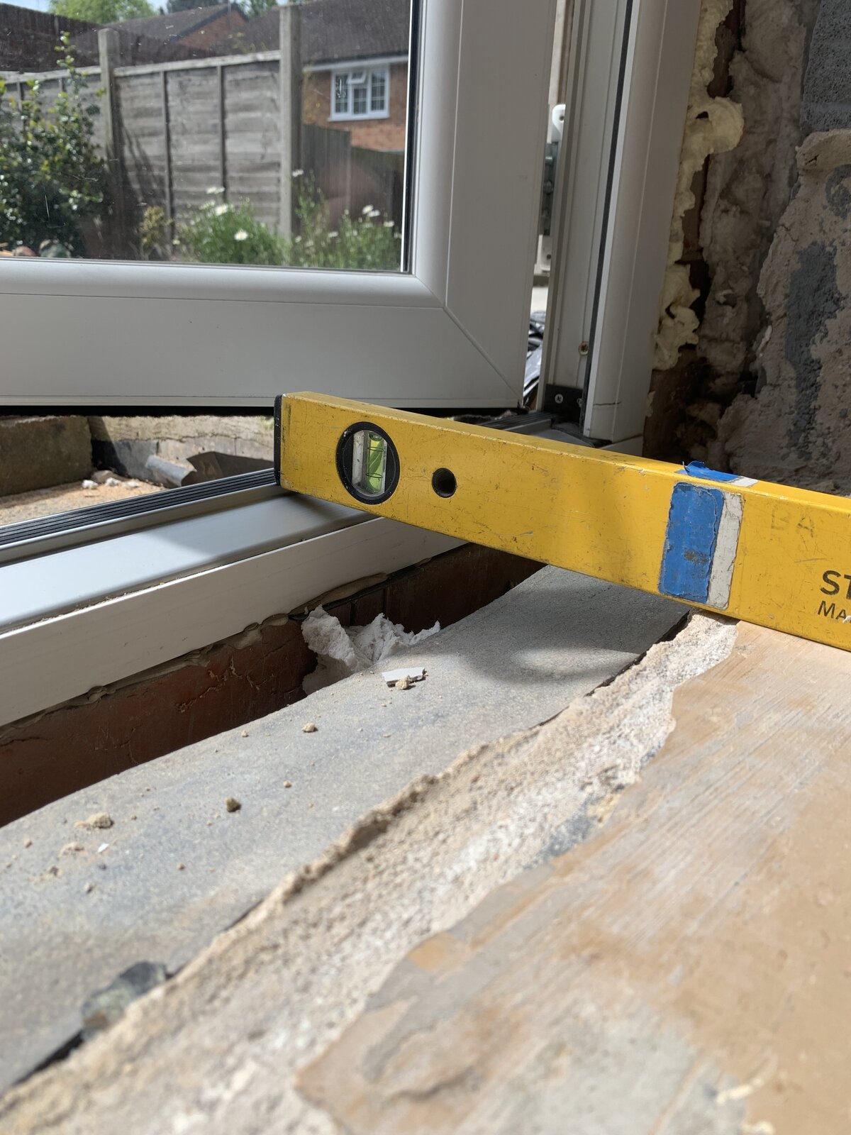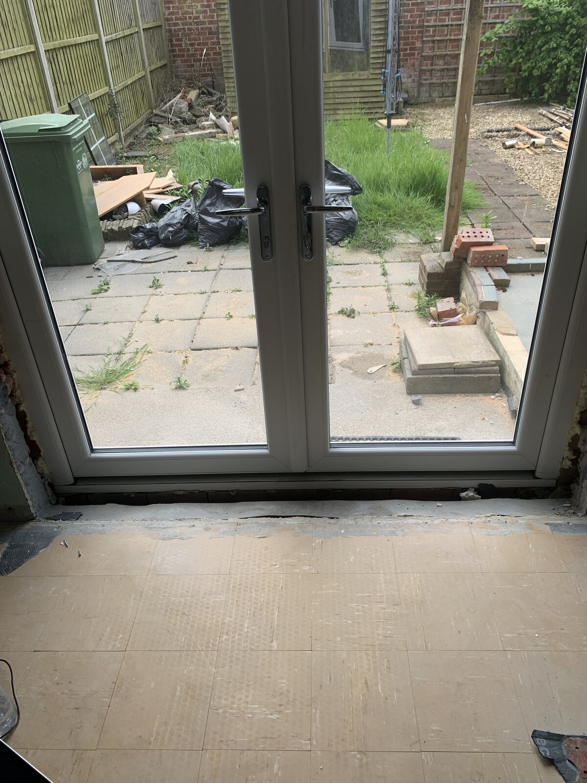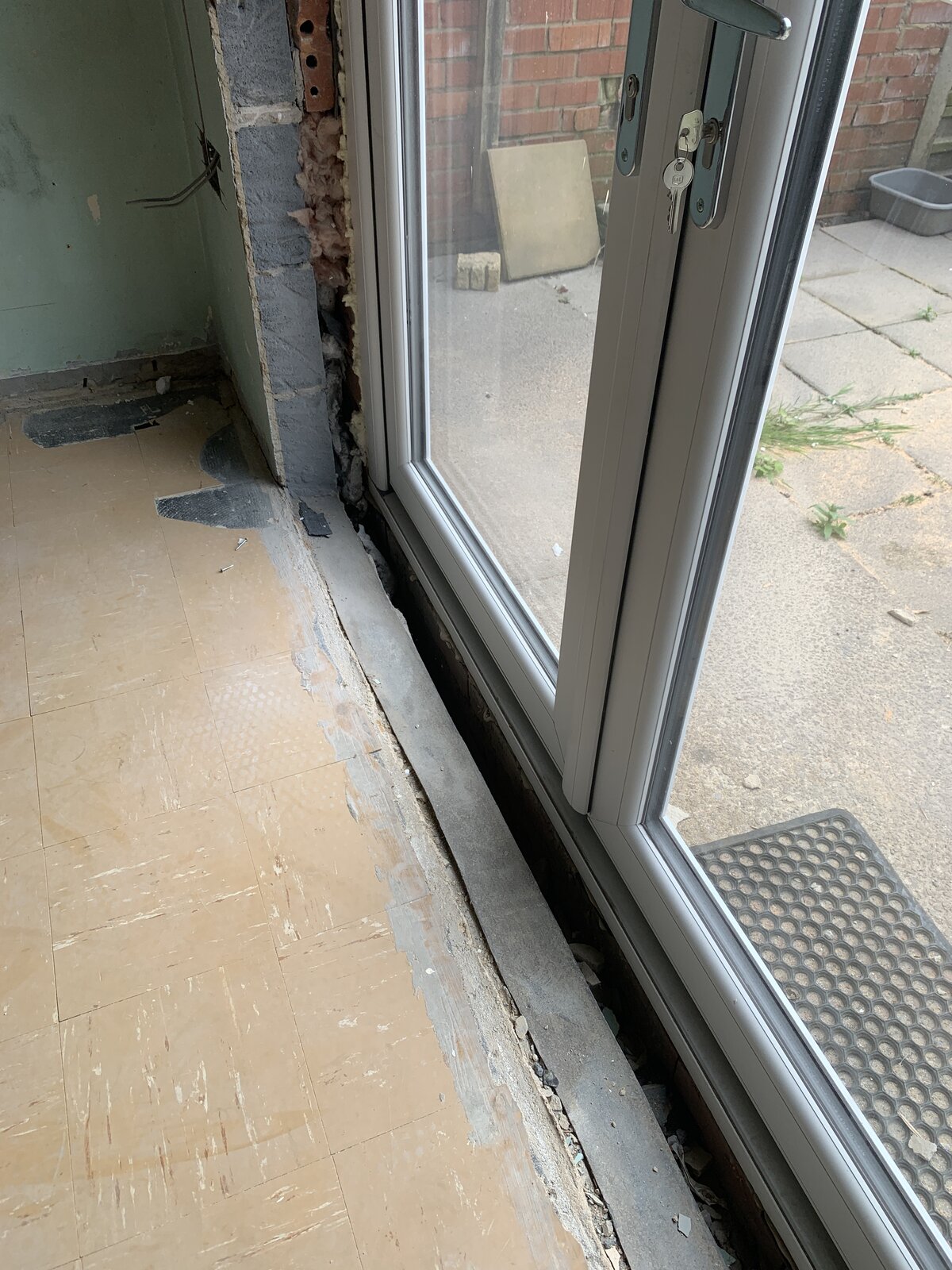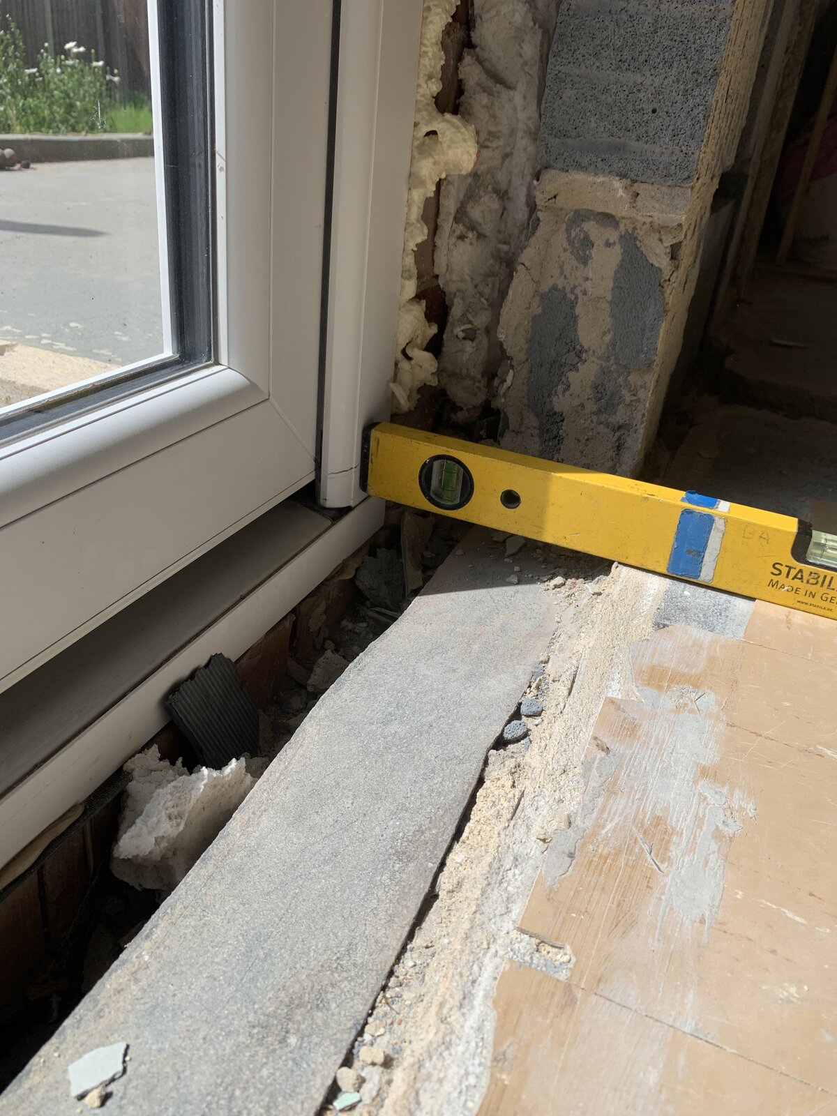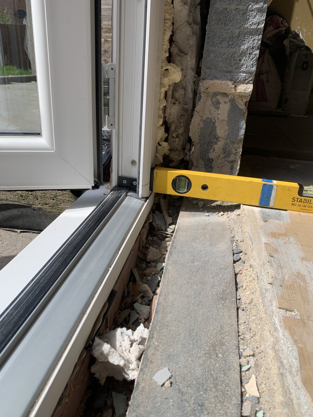 I had a window converted into French doors last month. A builder doing work at my property has mentioned that they are installed too low and the white trim should be higher that the floor level.