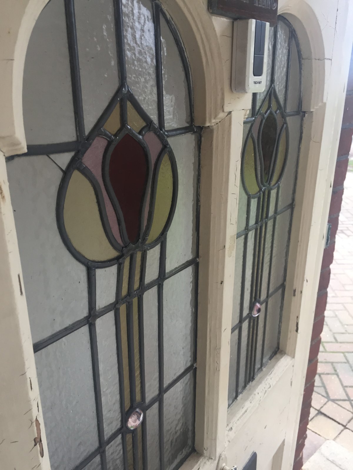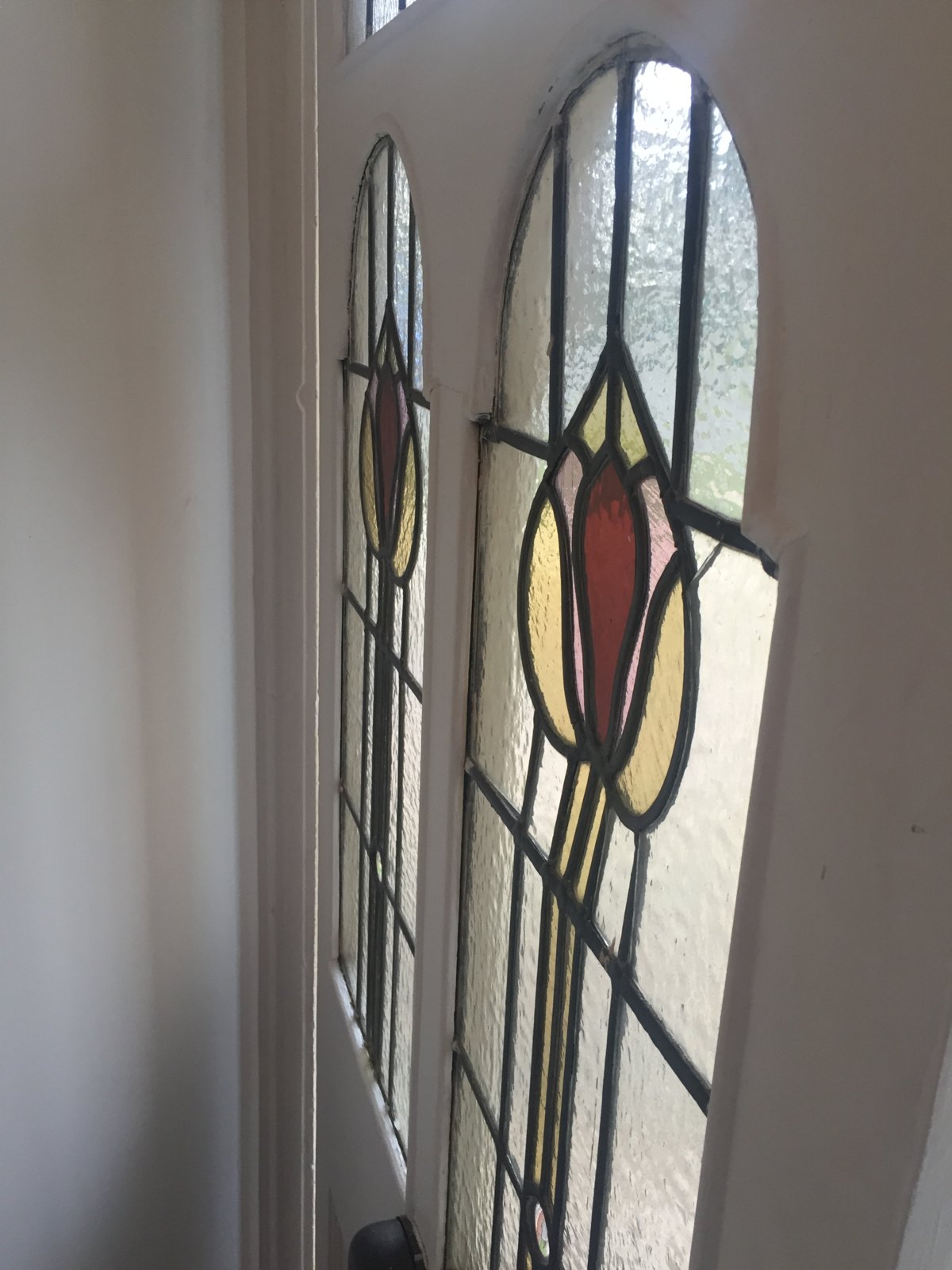 Firstly, the stained glass is in a bent out of shape on the left hand side (when looking from the front), but having asked around this will cost hundreds to fix, so I think we will leave it as is for now.