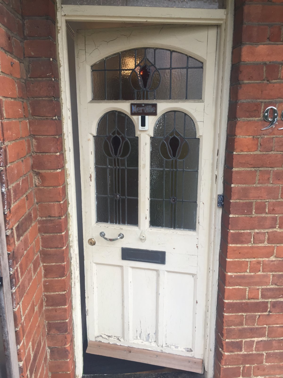 One of the last jobs I need to do on the house is the old front door which is in a sorry state. It would probably be easier to replace the whole thing but we are rather fond of the stained glass.