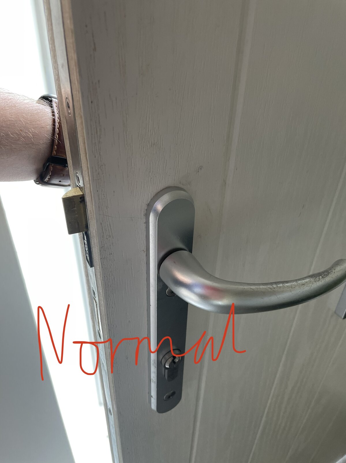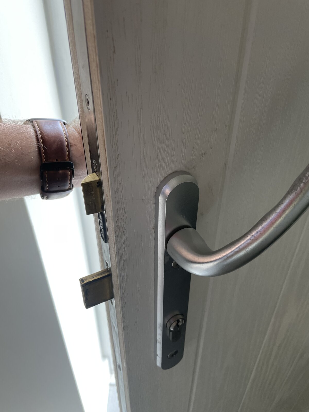Hi everyone, this week our front door has started to play up. I thought it was the lock barrel but that locks and unlocks fine. But the brass slanted pin in the middle doesn’t seem to be pulling back all the way inside the door when you move the handle. So that it jams closed or bounces against the frame if you try to close it when it’s open.