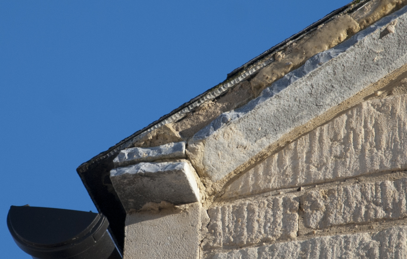 First winter in my new house and every morning I find lumps of mortar on the patio that have come from the roof verge. (see photo). The mortar is soft and crumbly and like an OXO cube (for the cooks among us). Very little if any cement content.
