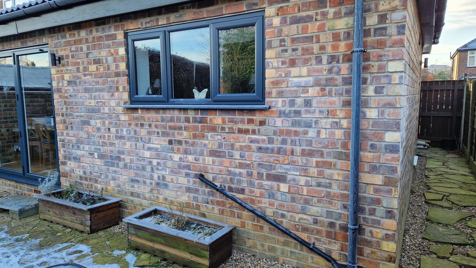I'm more concerned with why the kitchen window is so shallow. It needed to be about another 3 or 4 bricks deeper.I know it's been freezing cold recently but is it normal for brick to frost over like this on a new extension? It's north facing.