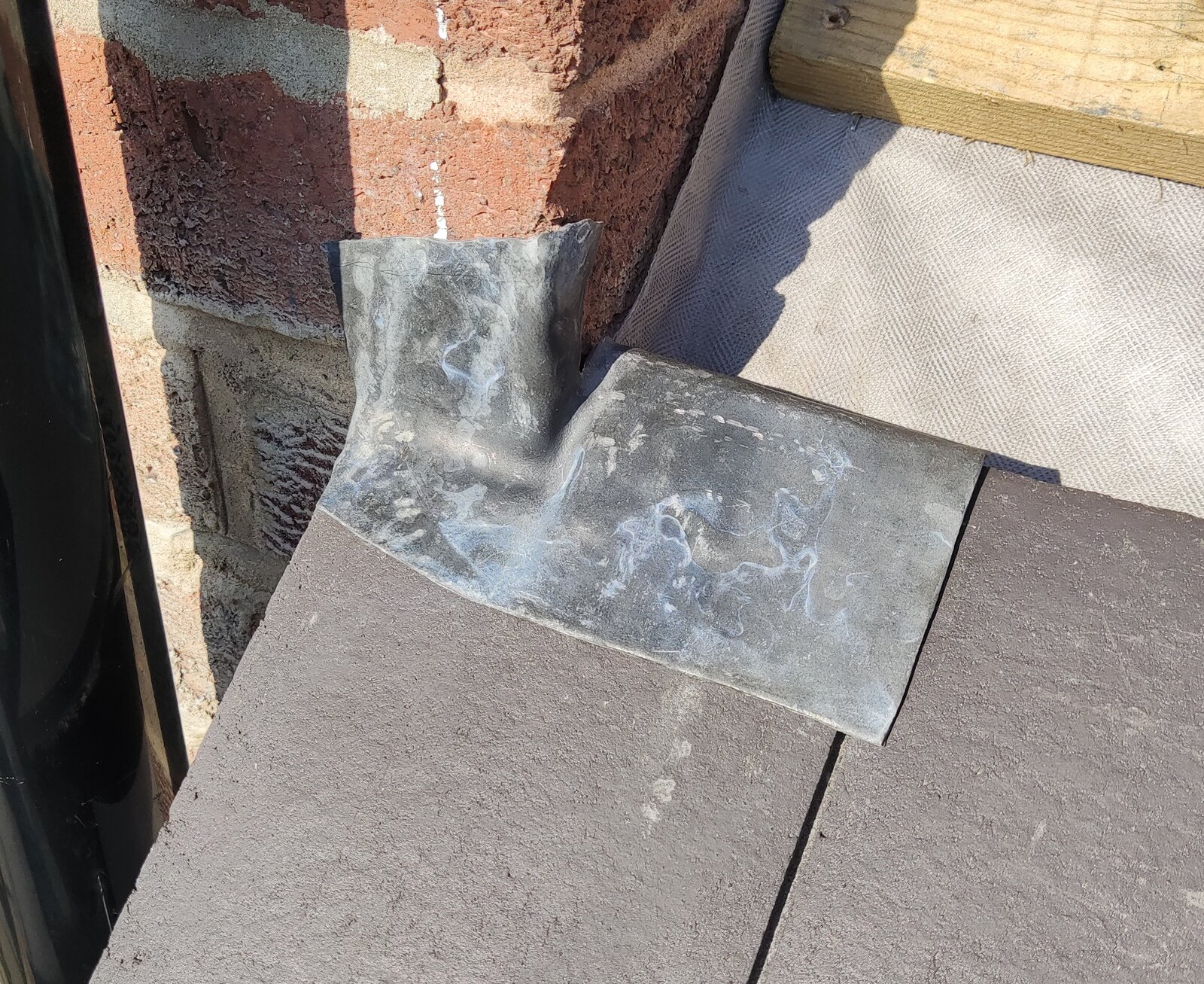 Apologies for the photos, these were what I took earlier. The right side fascia will be coming off as I'm not happy with it. Was unsure about the bottom lead soaker so folded it down over the fascia.